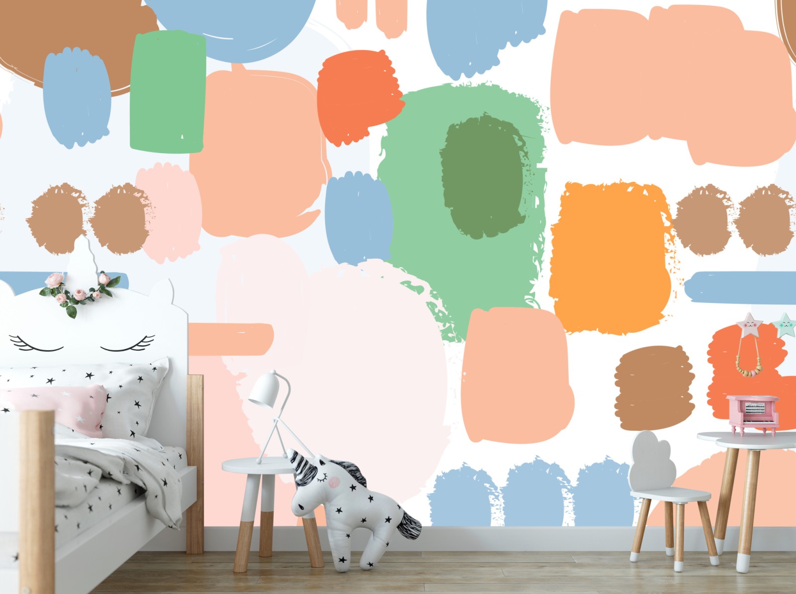 Dodaj do wnętrza uspokajającą kompozycję pastelowych pociągnięć pędzla i subtelny wzór.