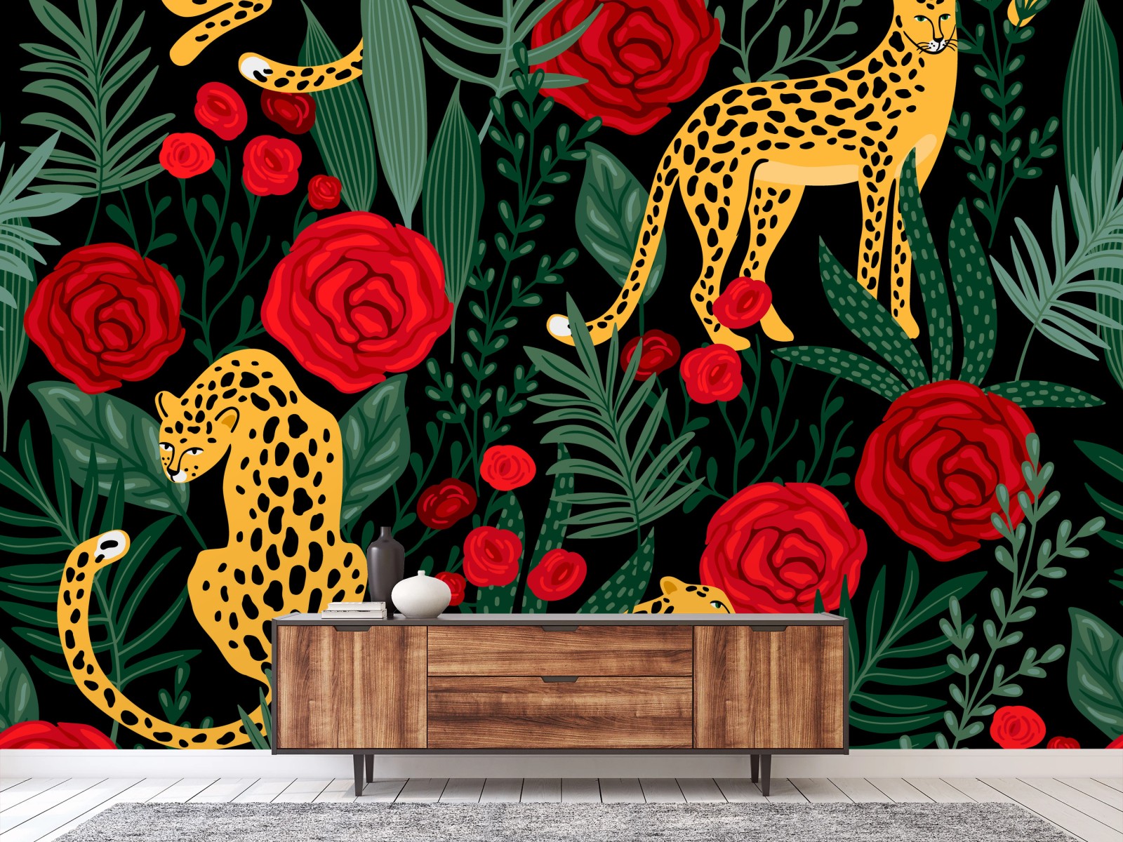 Fototapeta Egzotyczny wzór z gepardami i różami