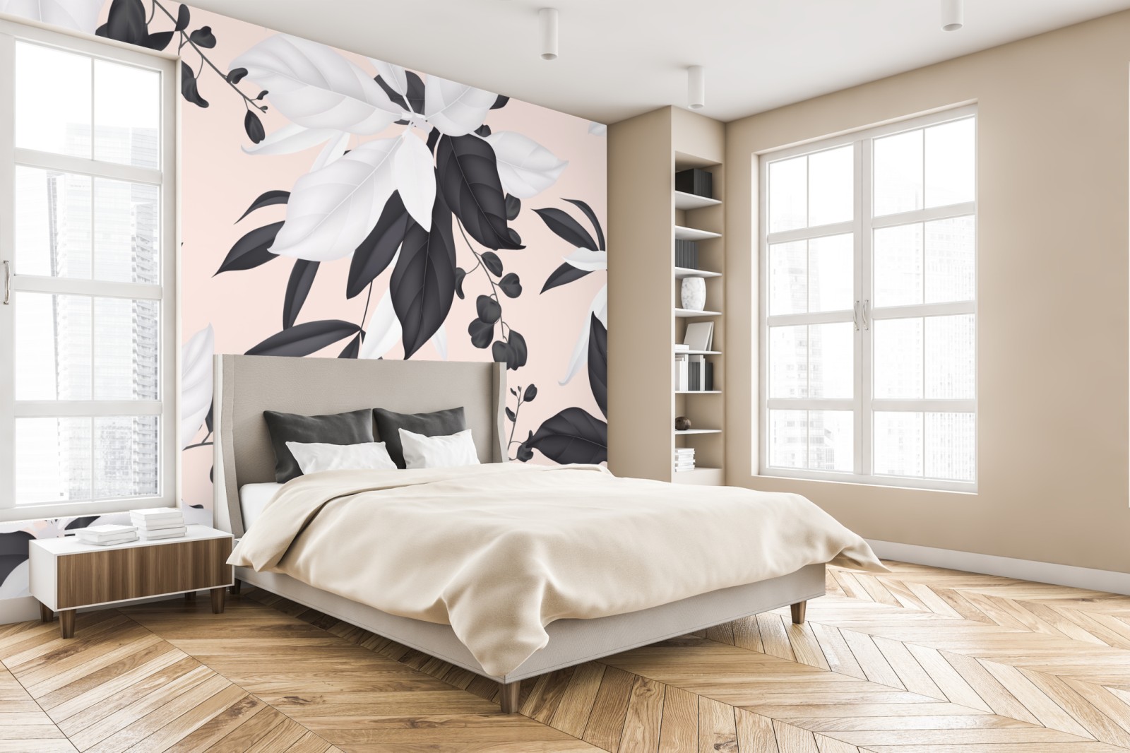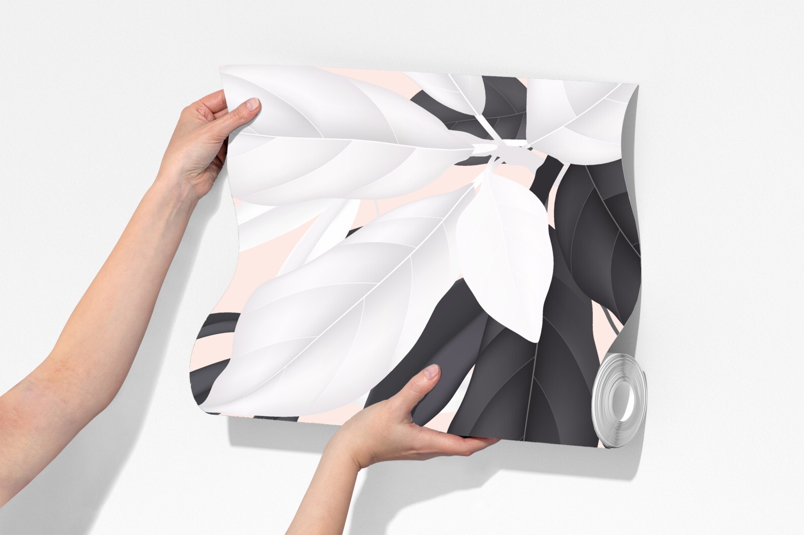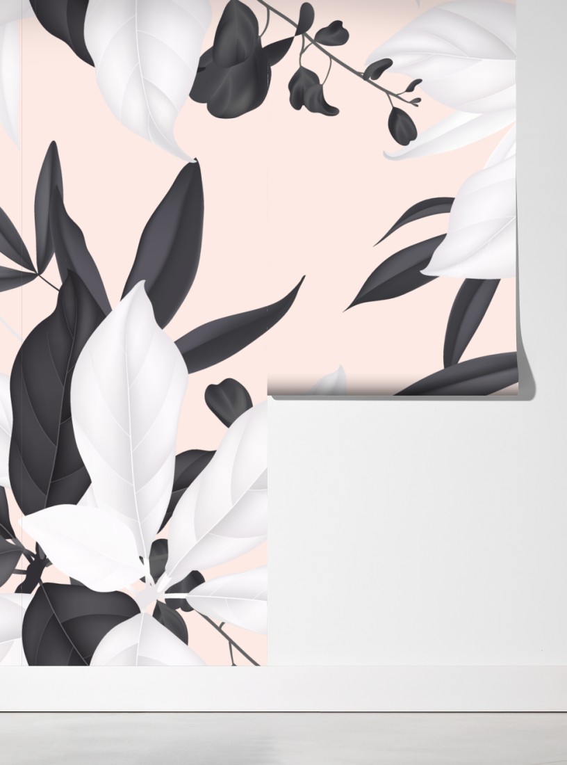 Odśwież wnętrze delikatnym pastelowym wzorem botanicznym z monochromatycznymi liśćmi na różowym tle.