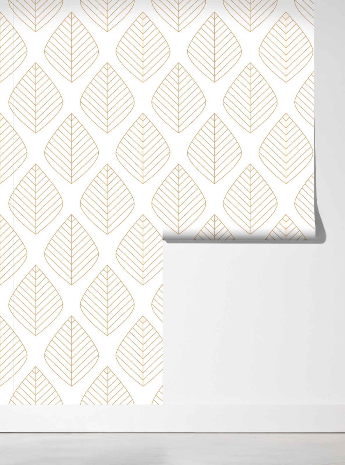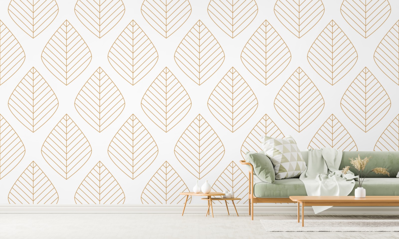 Dodaj swojej przestrzeni subtelny złoty geometryczny wzór liści, który wnosi ciepło i nowoczesną elegancję do każdego pokoju.