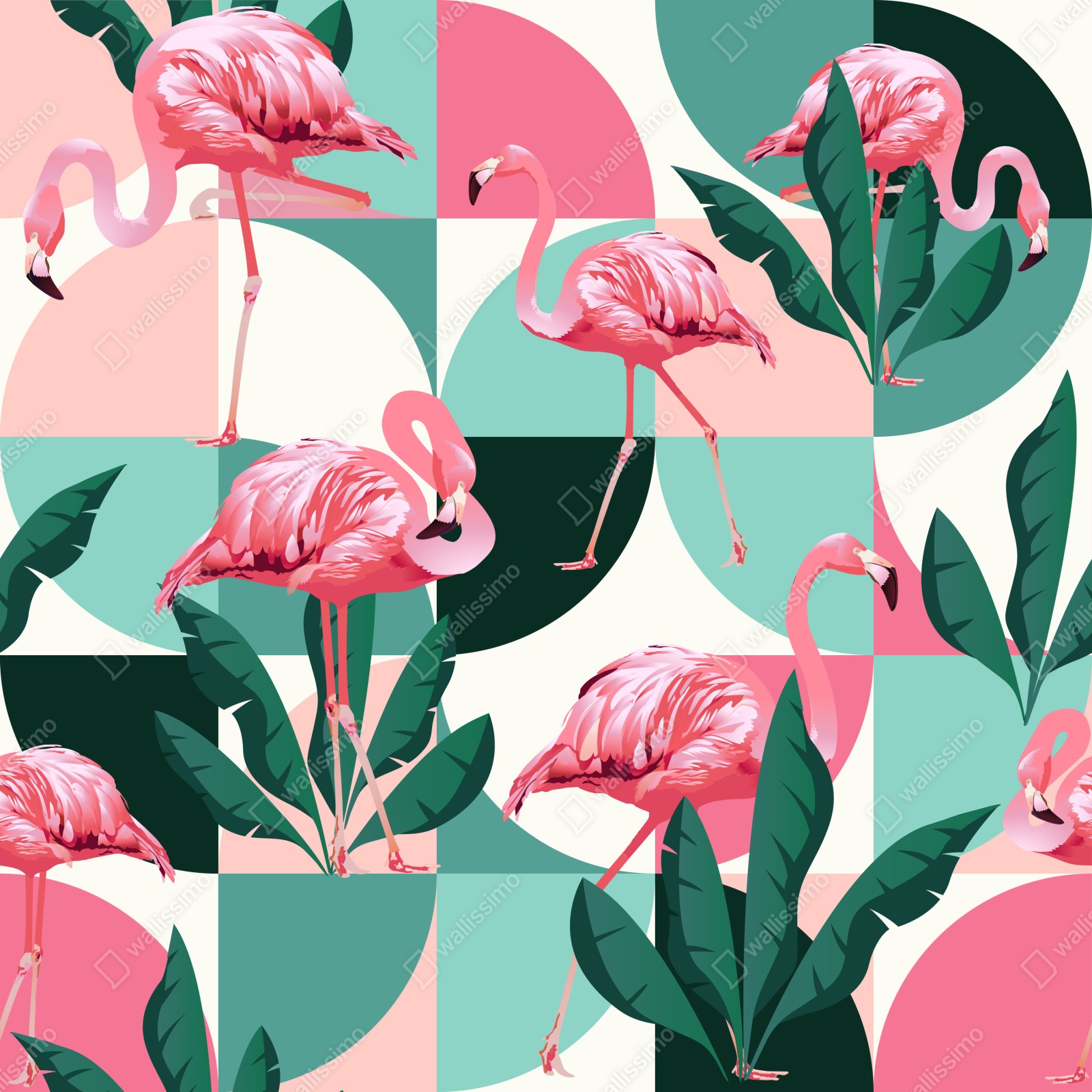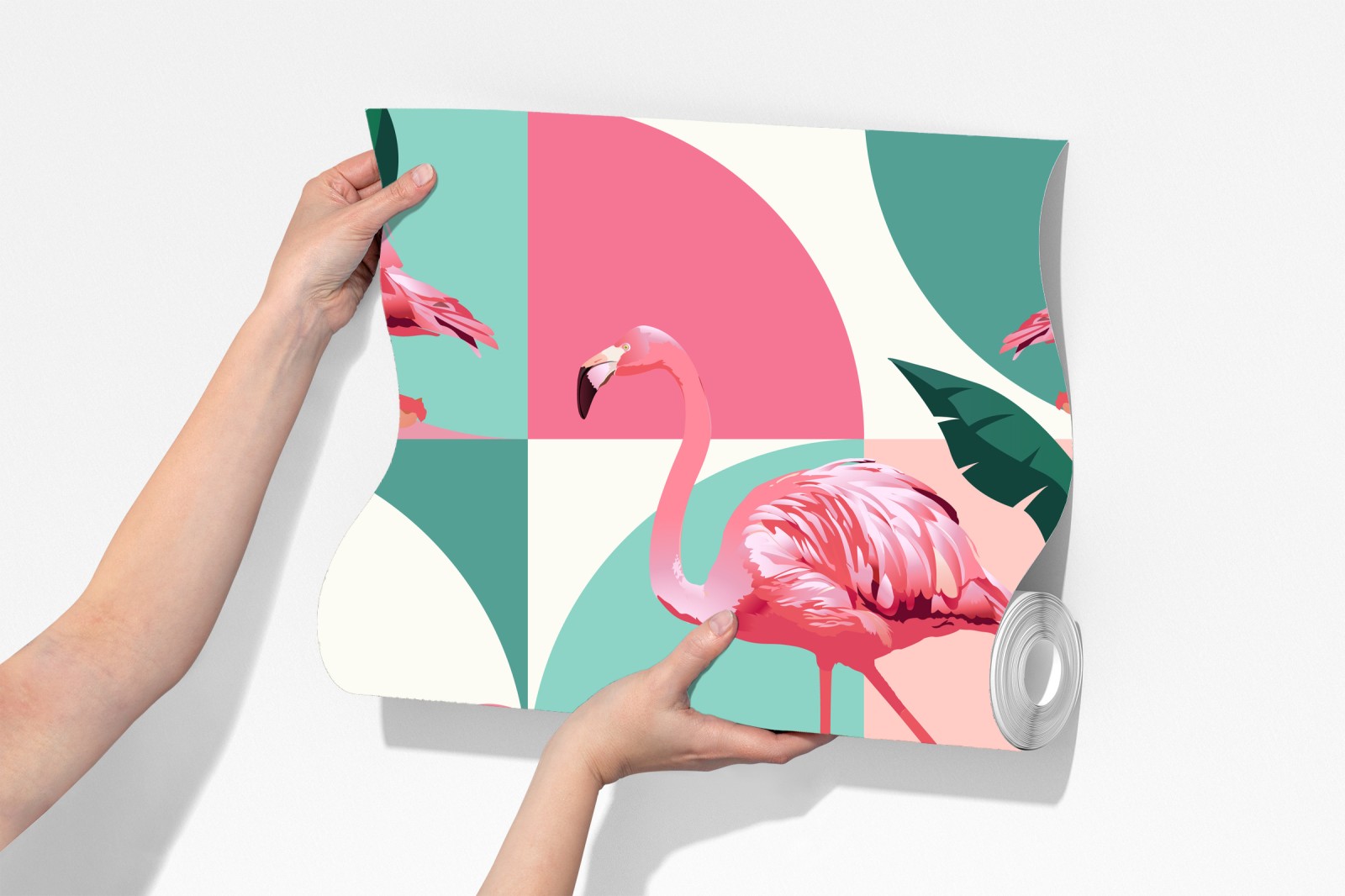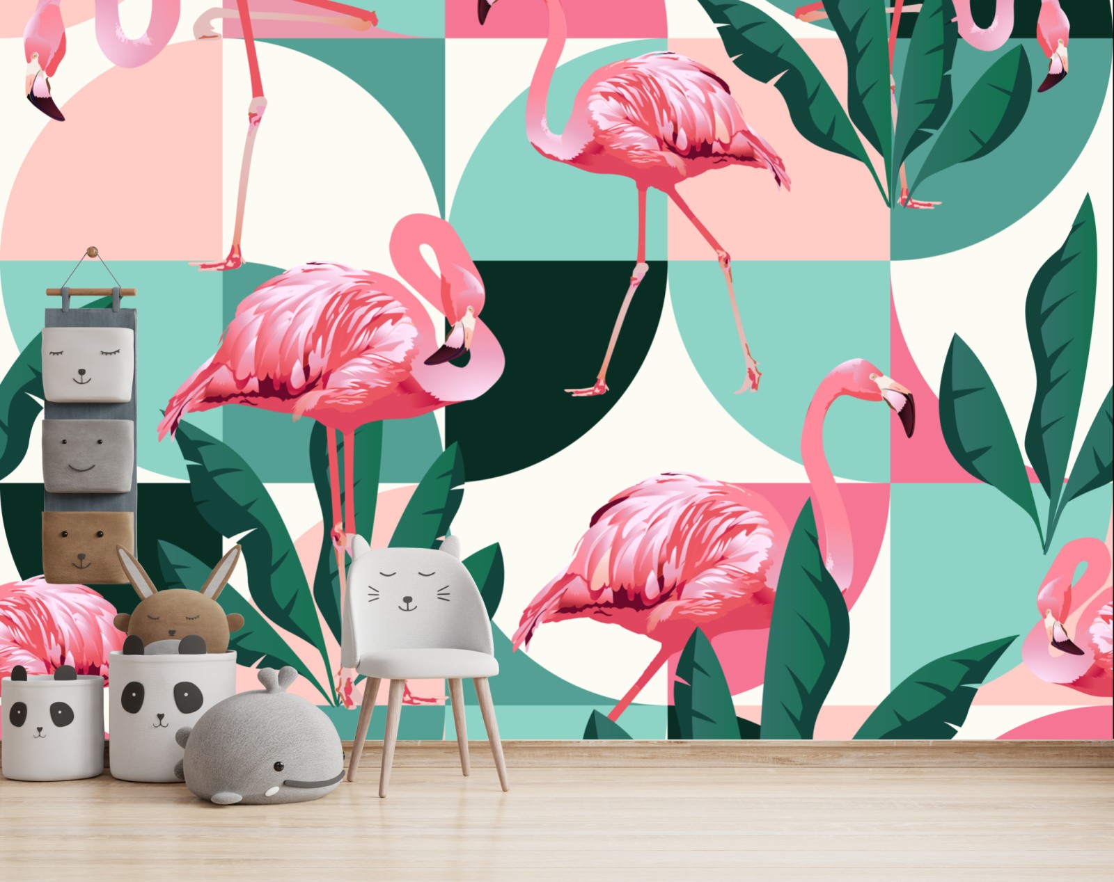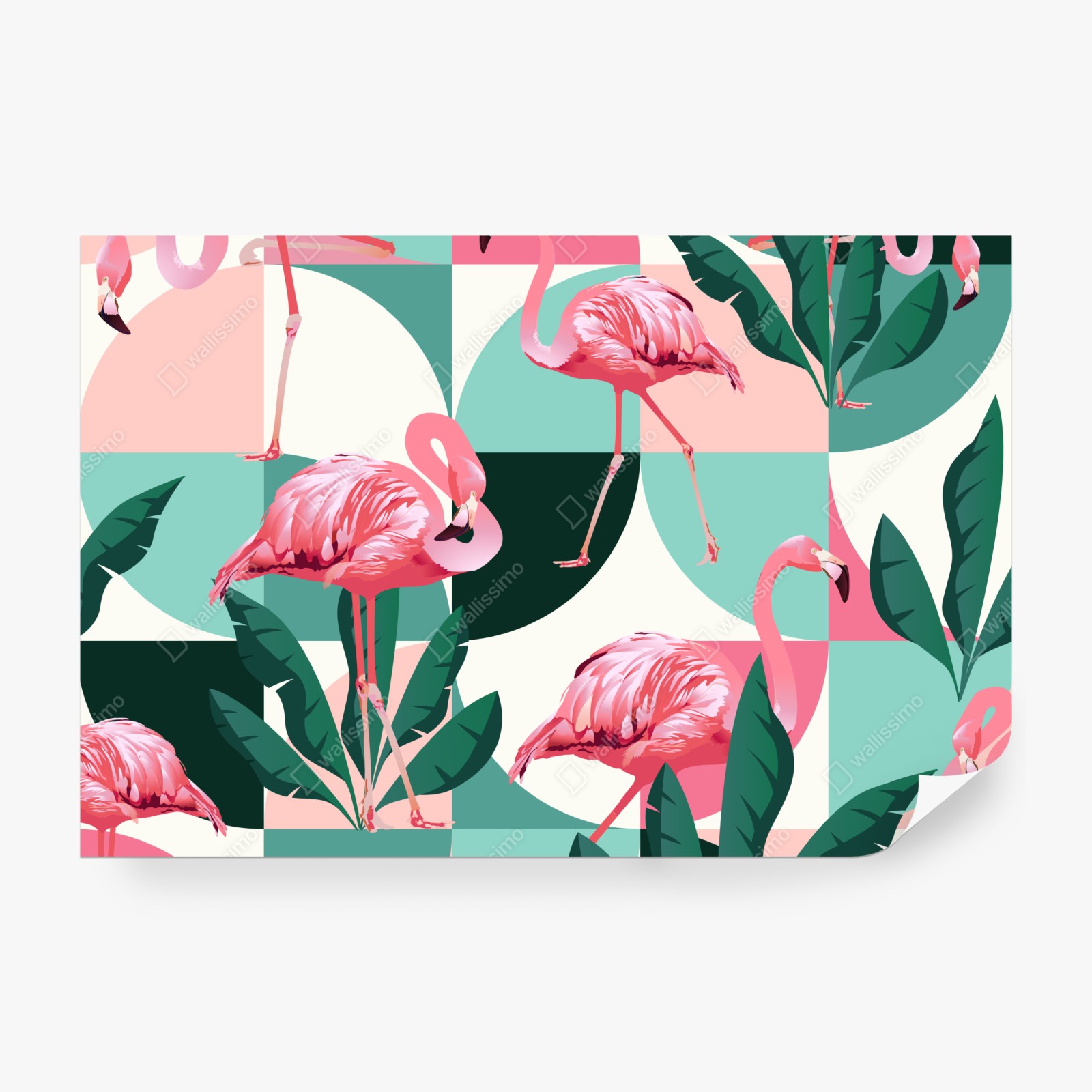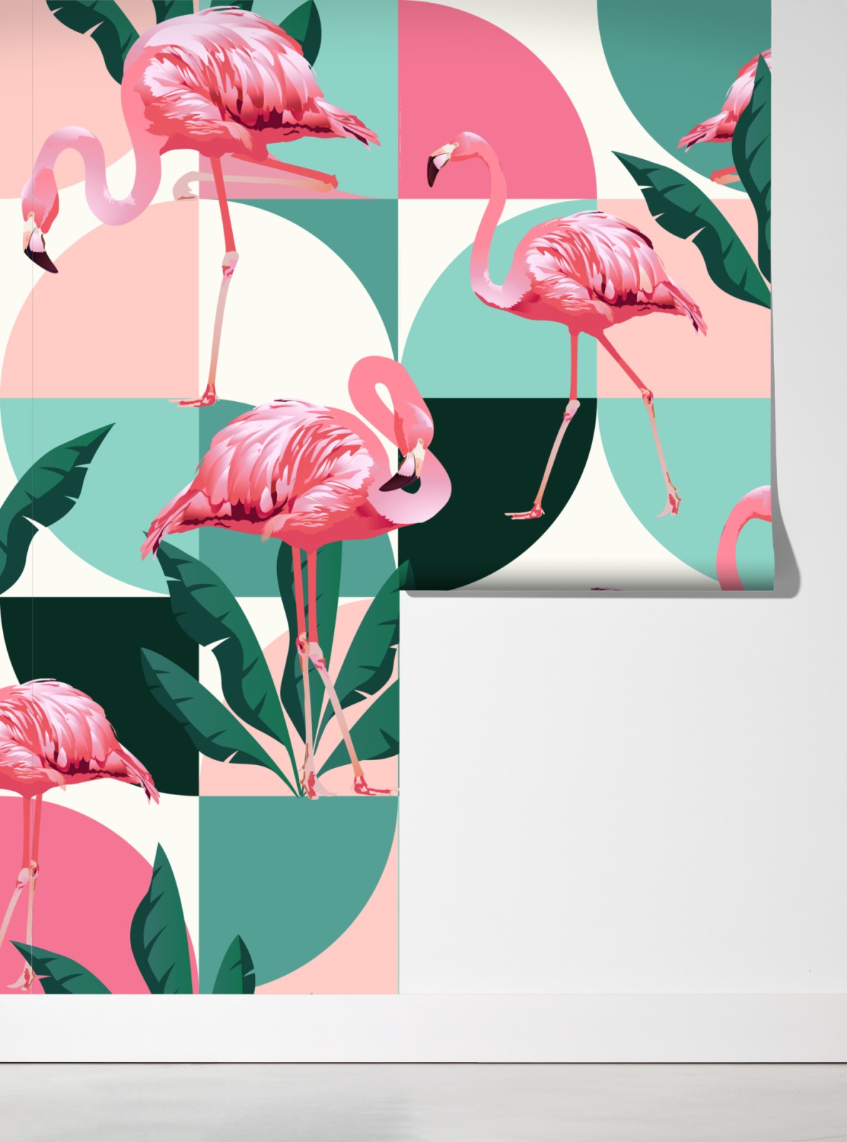 Dodaj tropikalnego uroku do wnętrza dzięki pastelowemu wzorowi z flamingami i zielonymi liśćmi.