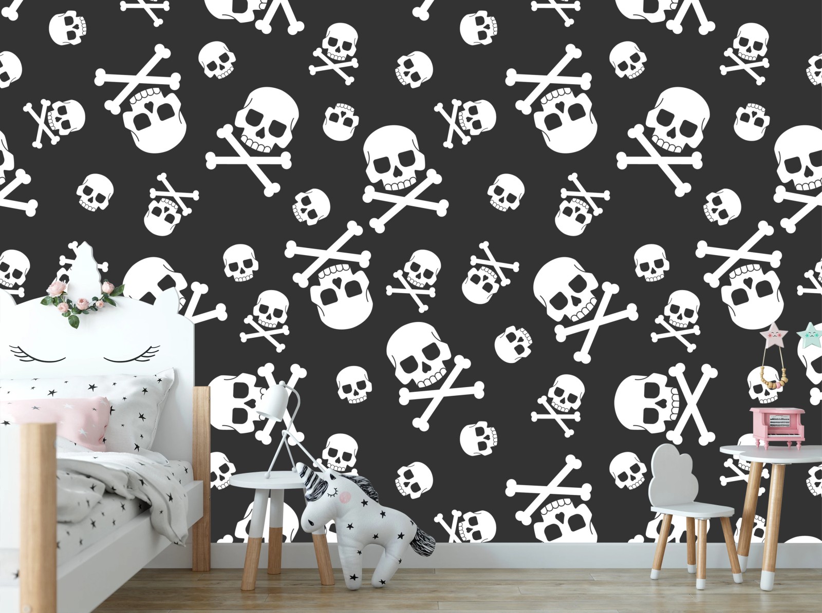 Fototapeta Biały wzór czaszek na szarym tle