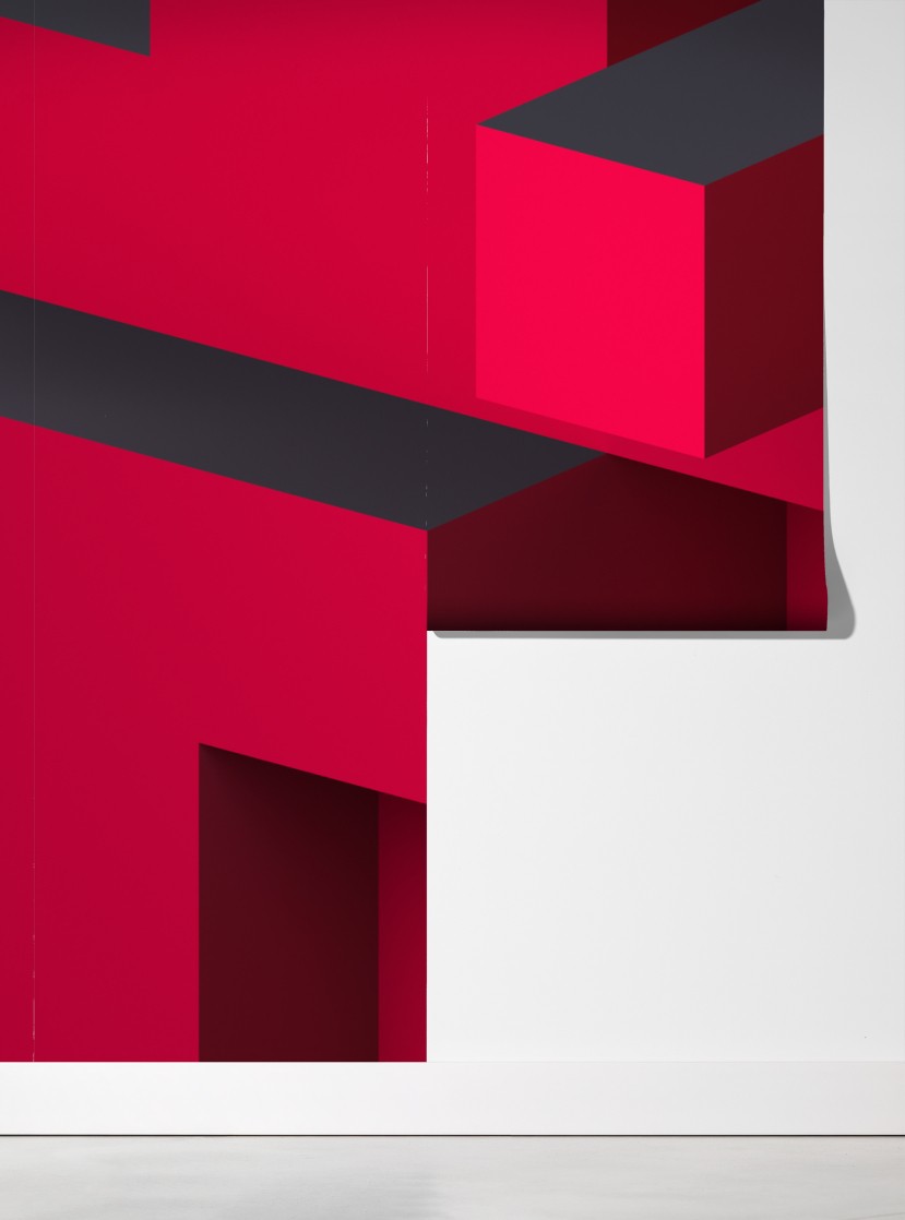 Odśwież swoje wnętrze efektowną czerwoną kompozycją geometryczną, która wnosi nowoczesną głębię i dynamiczny kontrast.