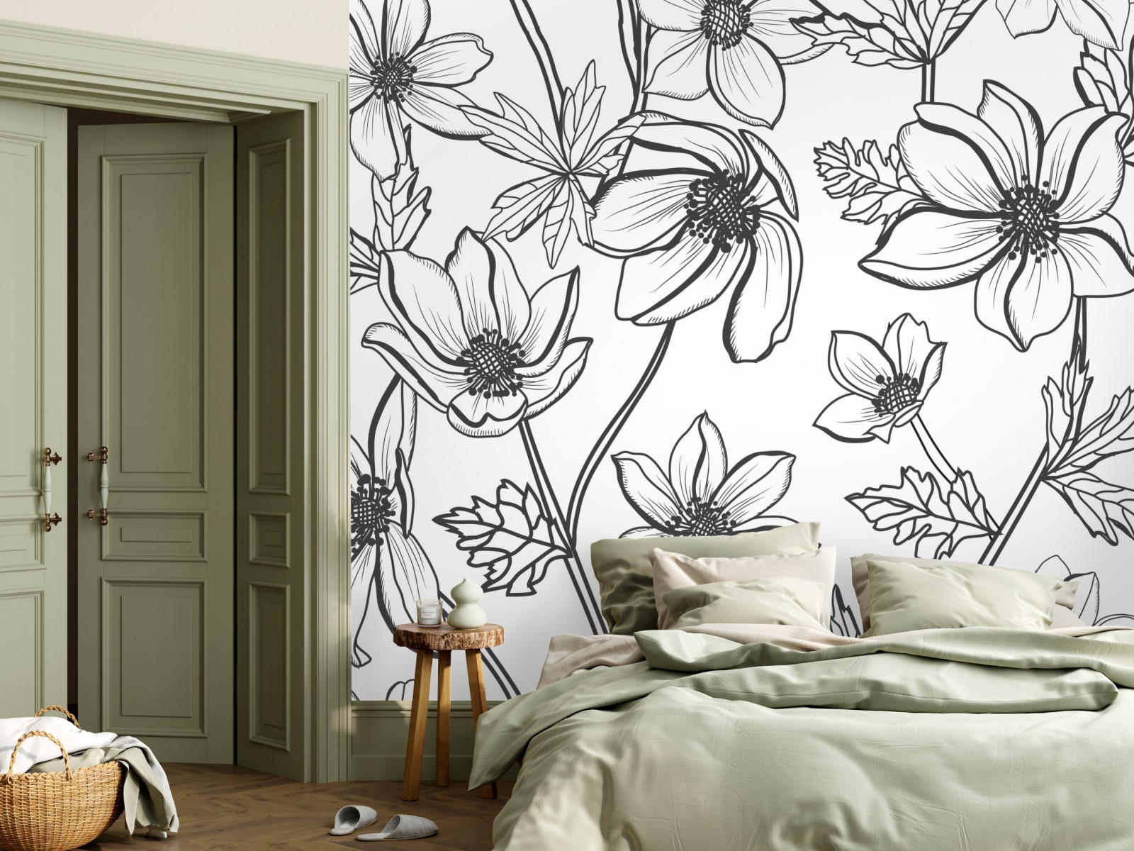 Elegancki monochromatyczny motyw botaniczny dodaje spokojnego, naturalnego charakteru wnętrzu i świetnie pasuje do minimalistycznych aranżacji.
