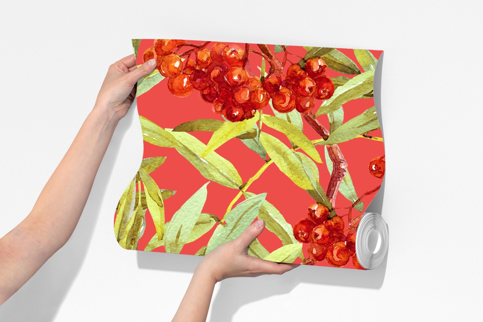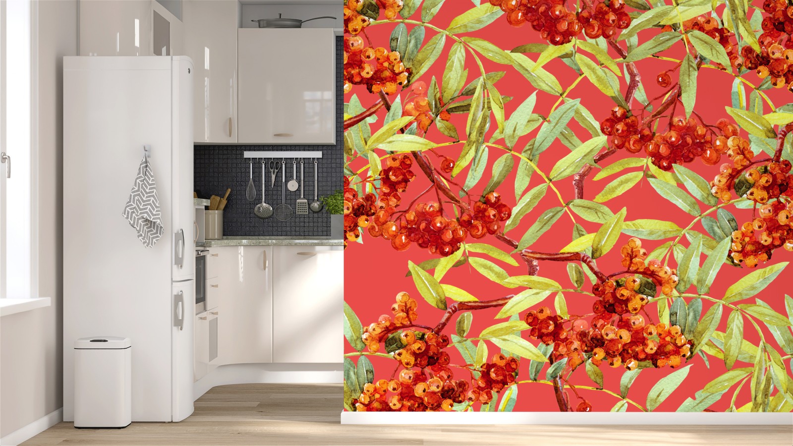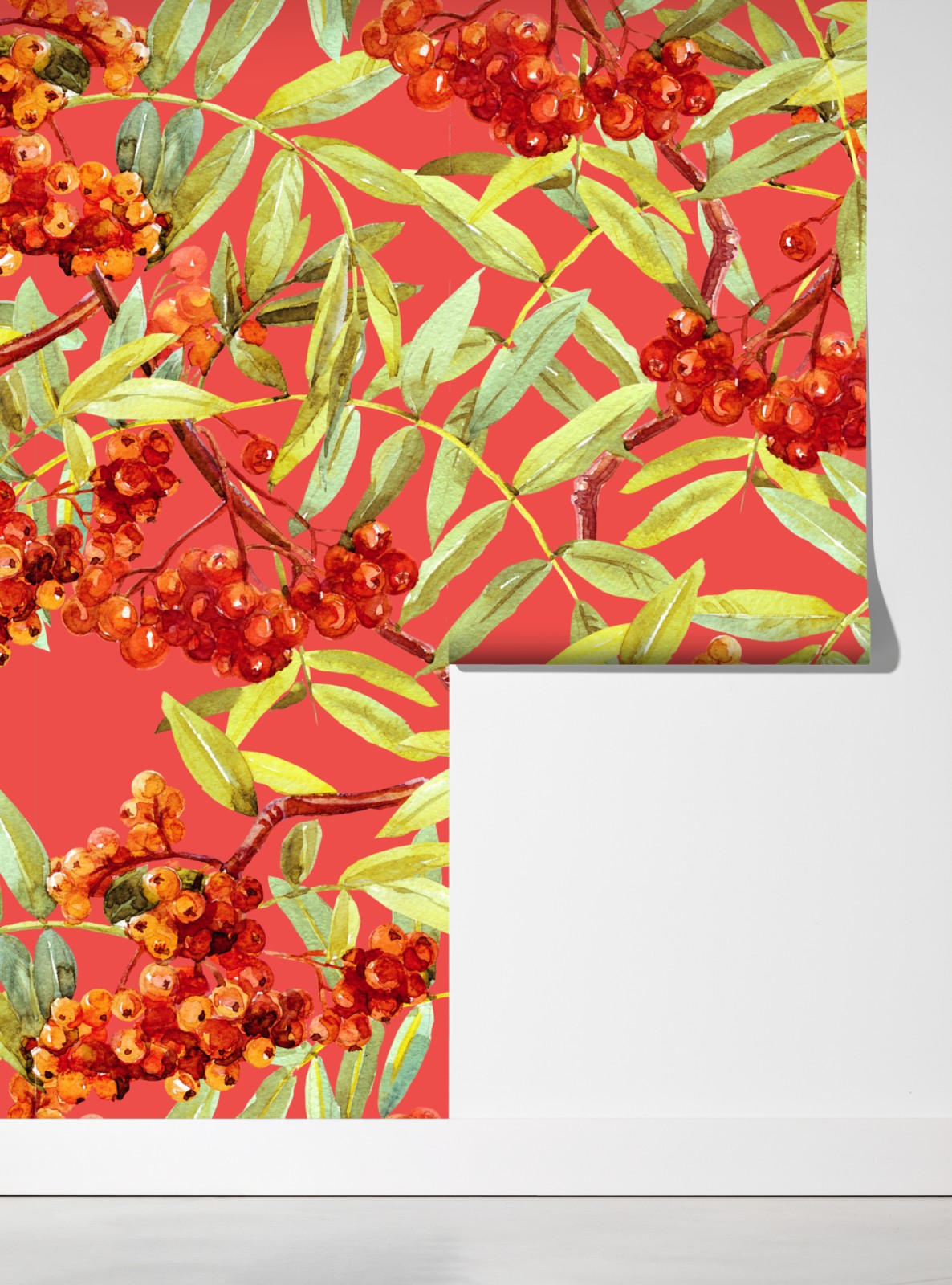 Dodaj ścianom naturalnego uroku dzięki akwarelowemu wzorowi jarzębiny, idealnemu do wnętrz.