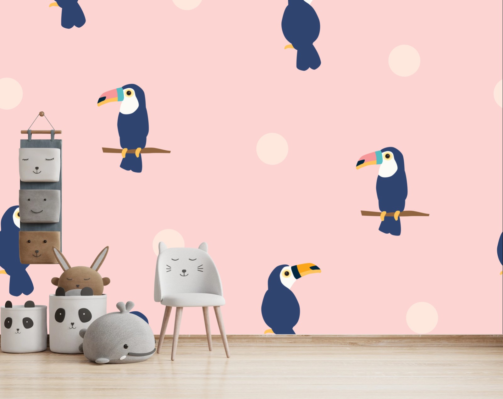 Fototapeta Wesoły wzór z tukanami na pastelowym różu