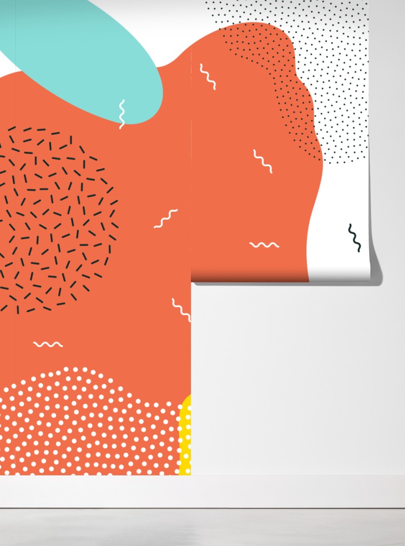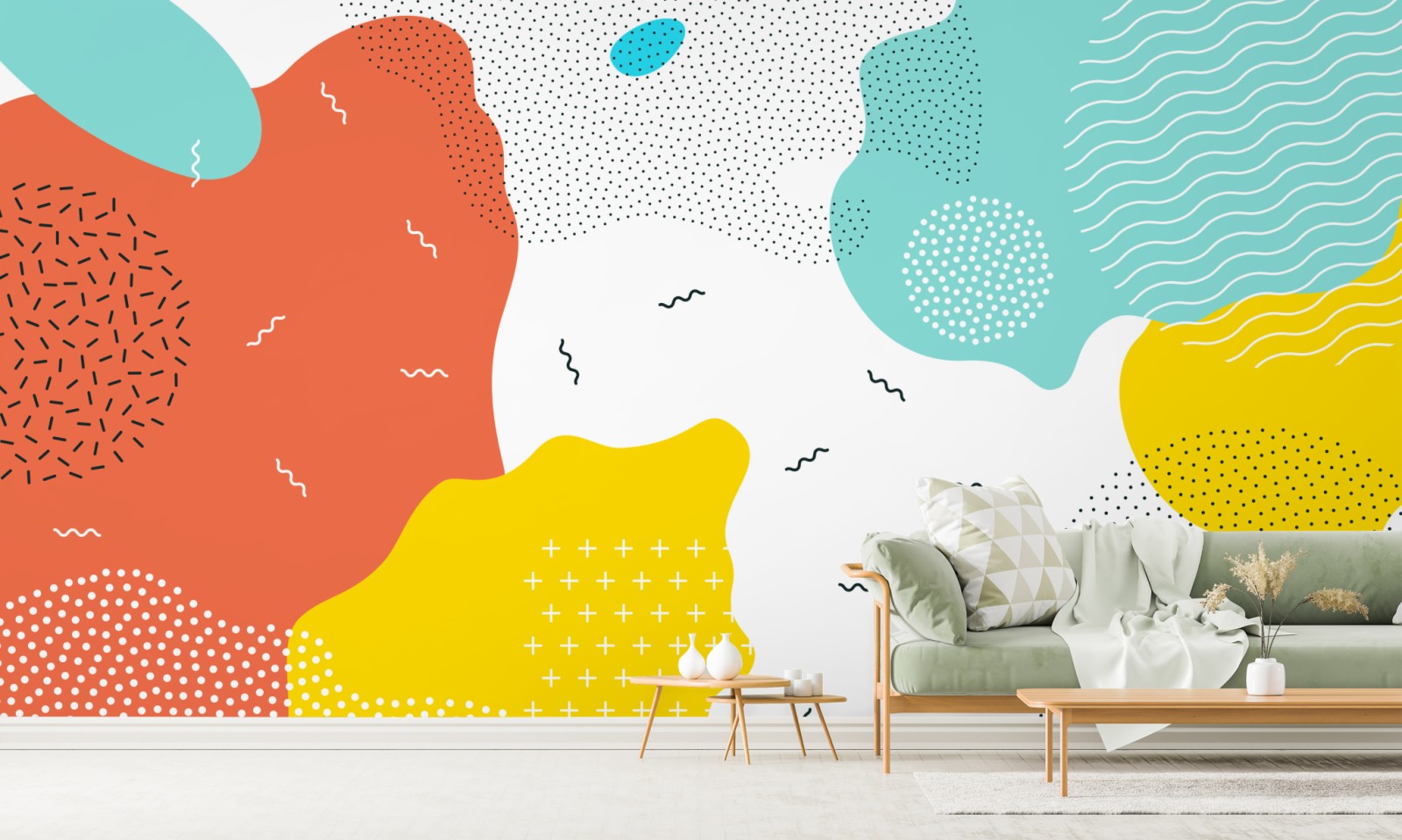 Jasna abstrakcyjna kompozycja z zabawnymi kształtami i żywymi kolorami, która ożywi każde wnętrze.