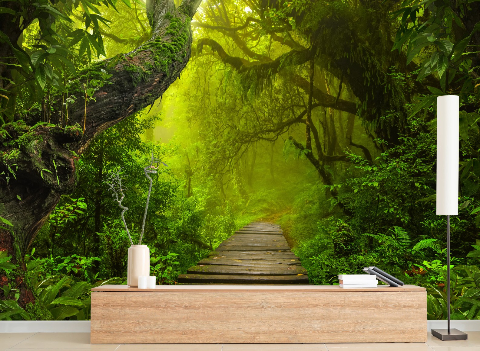 Fototapeta Mistyczna zielona ścieżka w lesie