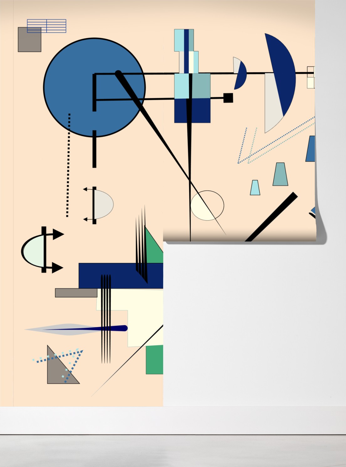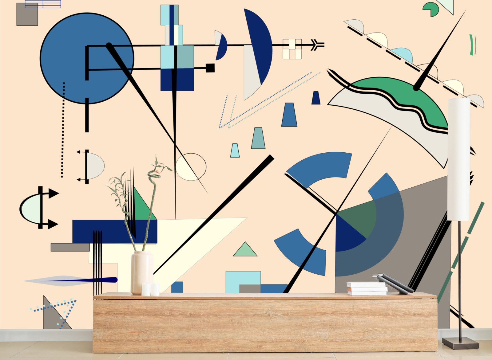 Wprowadź nowoczesną elegancję do wnętrza dzięki geometrycznej kompozycji w stonowanych pastelach i czystych liniach.