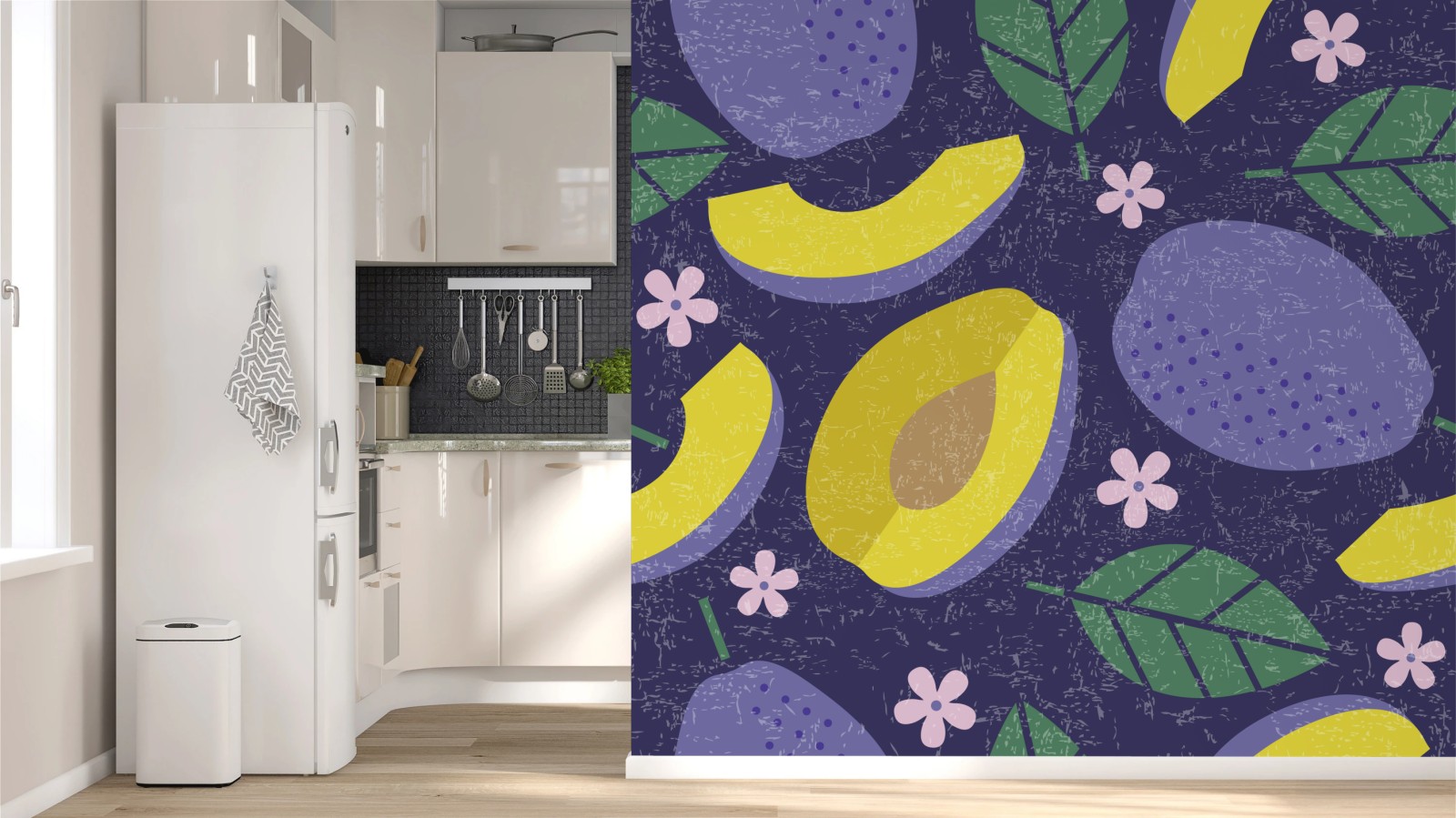 Fototapeta Radosny wzór ze śliwkami i liśćmi