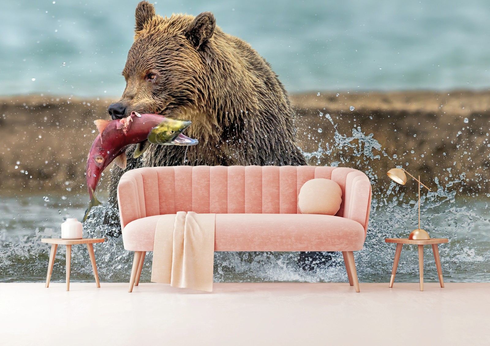 Fototapeta Niedźwiedź łapiący łososia w rzece