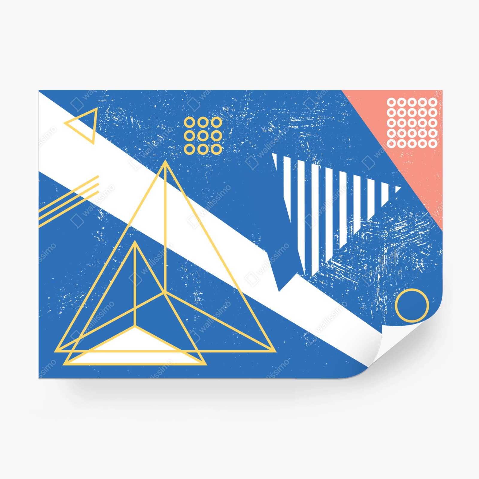 - retro, geometryczny, tekstura, różowy, żółty, nowoczesny, abstrakcyjny, niebieski, paski, trójkąty