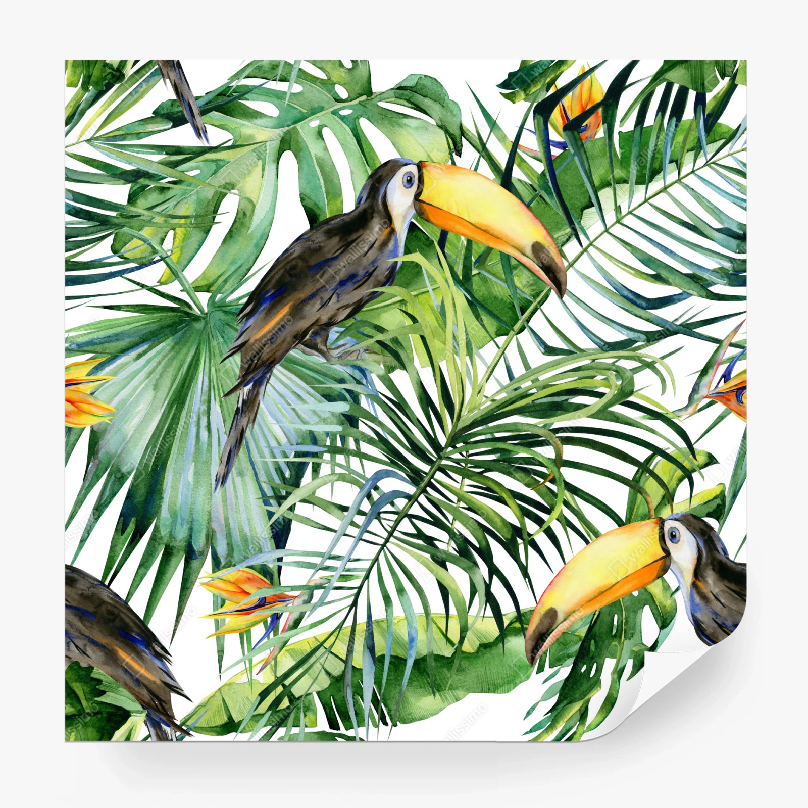 Fototapeta Akwarelowy tukan w tropikalnym wzorze