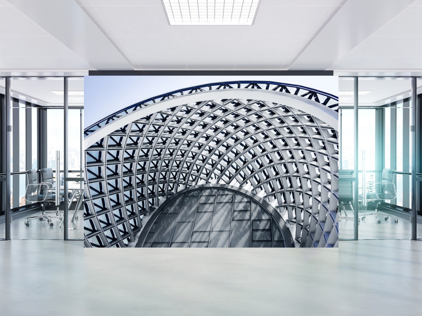 Dodaj nowoczesny akcent do wnętrza dzięki efektownej grafice geometrycznej architektury łączącej czyste linie i dynamiczne krzywizny.