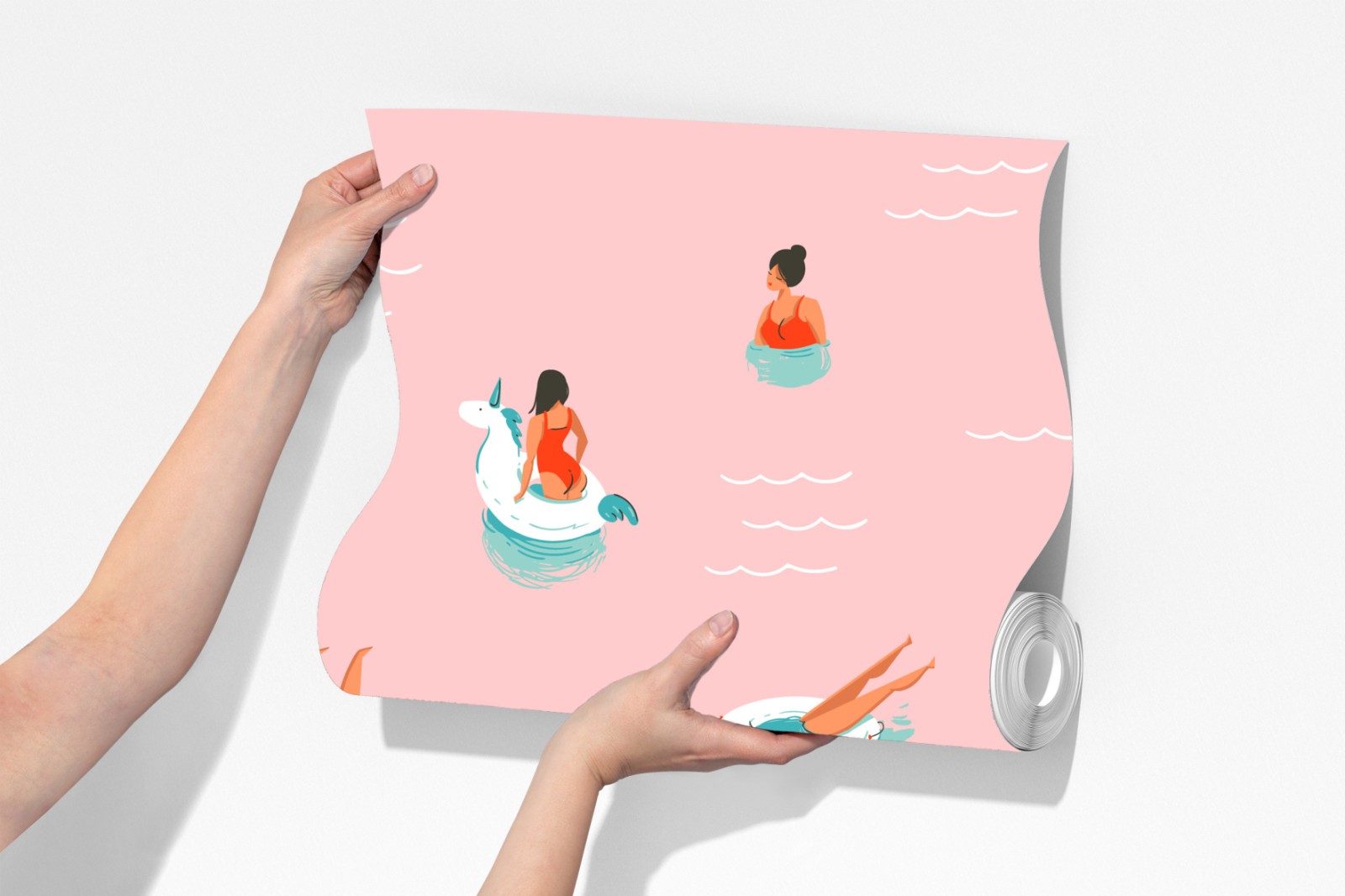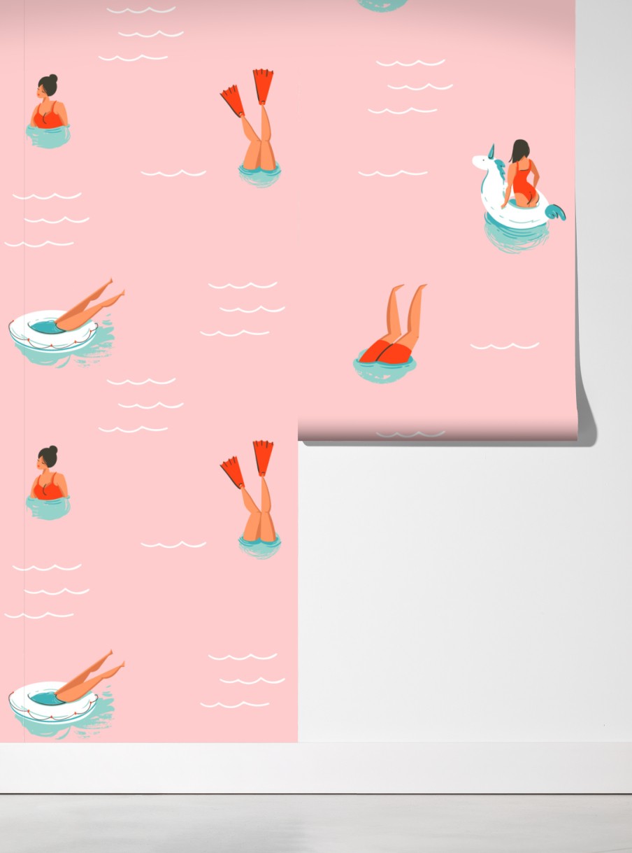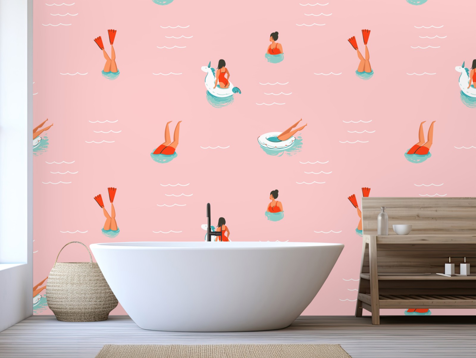 Uroczy pastelowy wzór basenowy, który wnosi letni i zabawny klimat do każdego wnętrza.