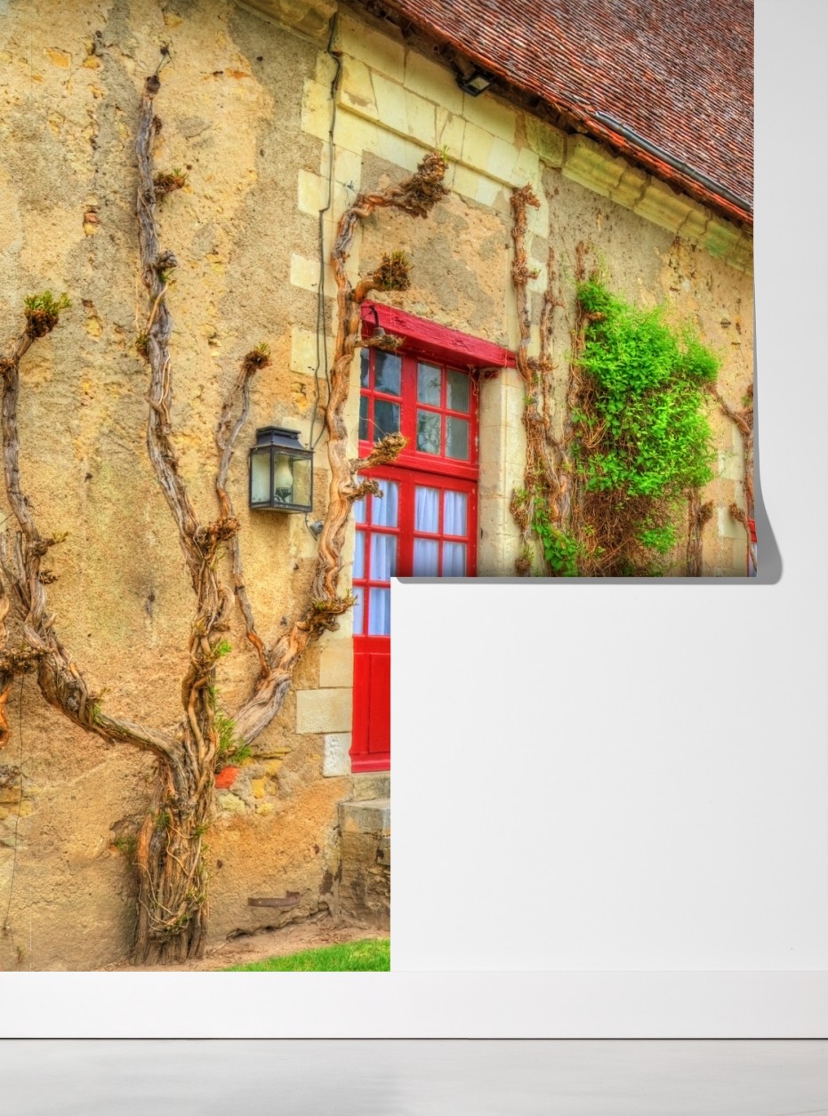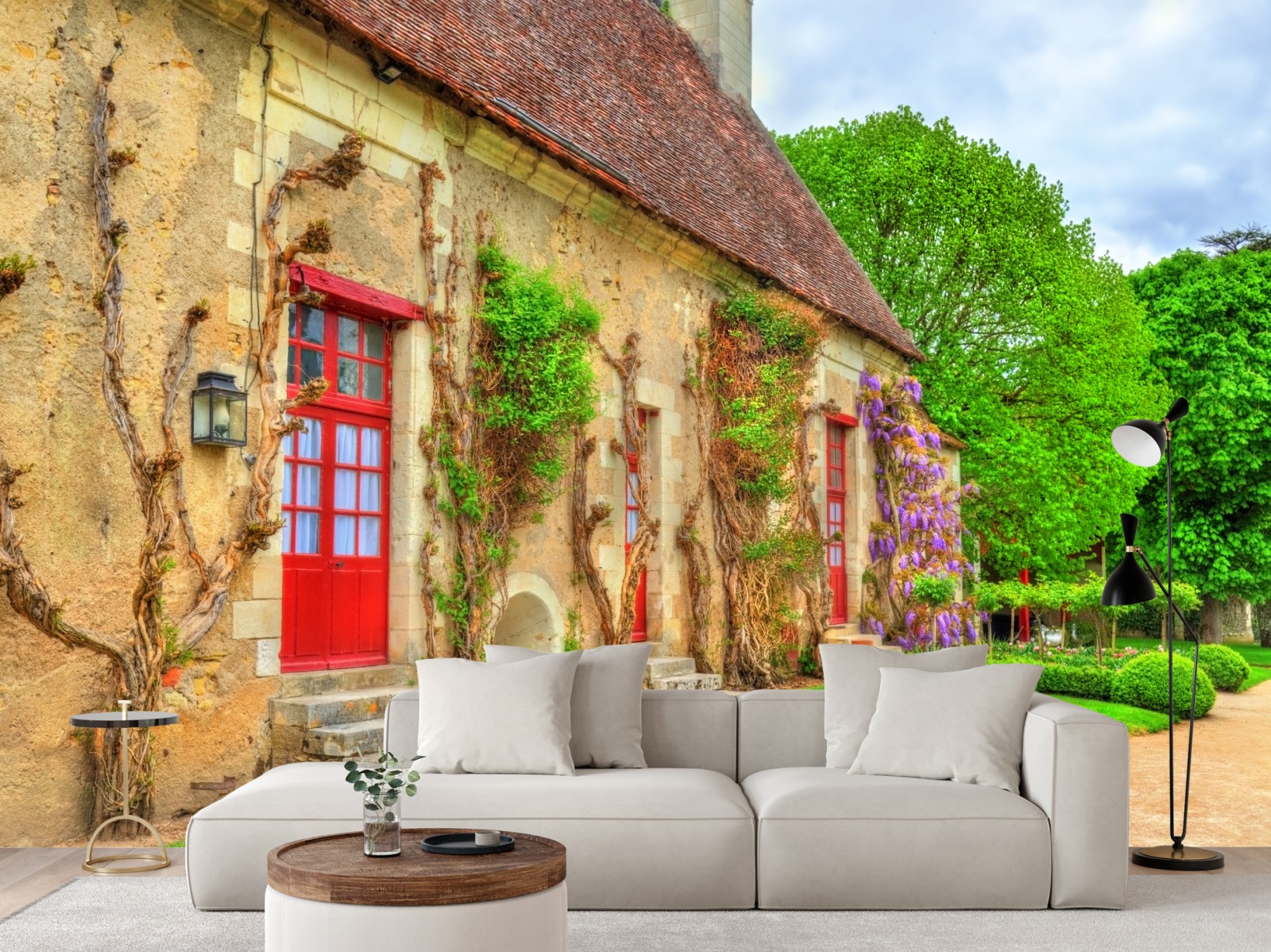 Fototapeta Uroczy domek z kwitnącą glicynią