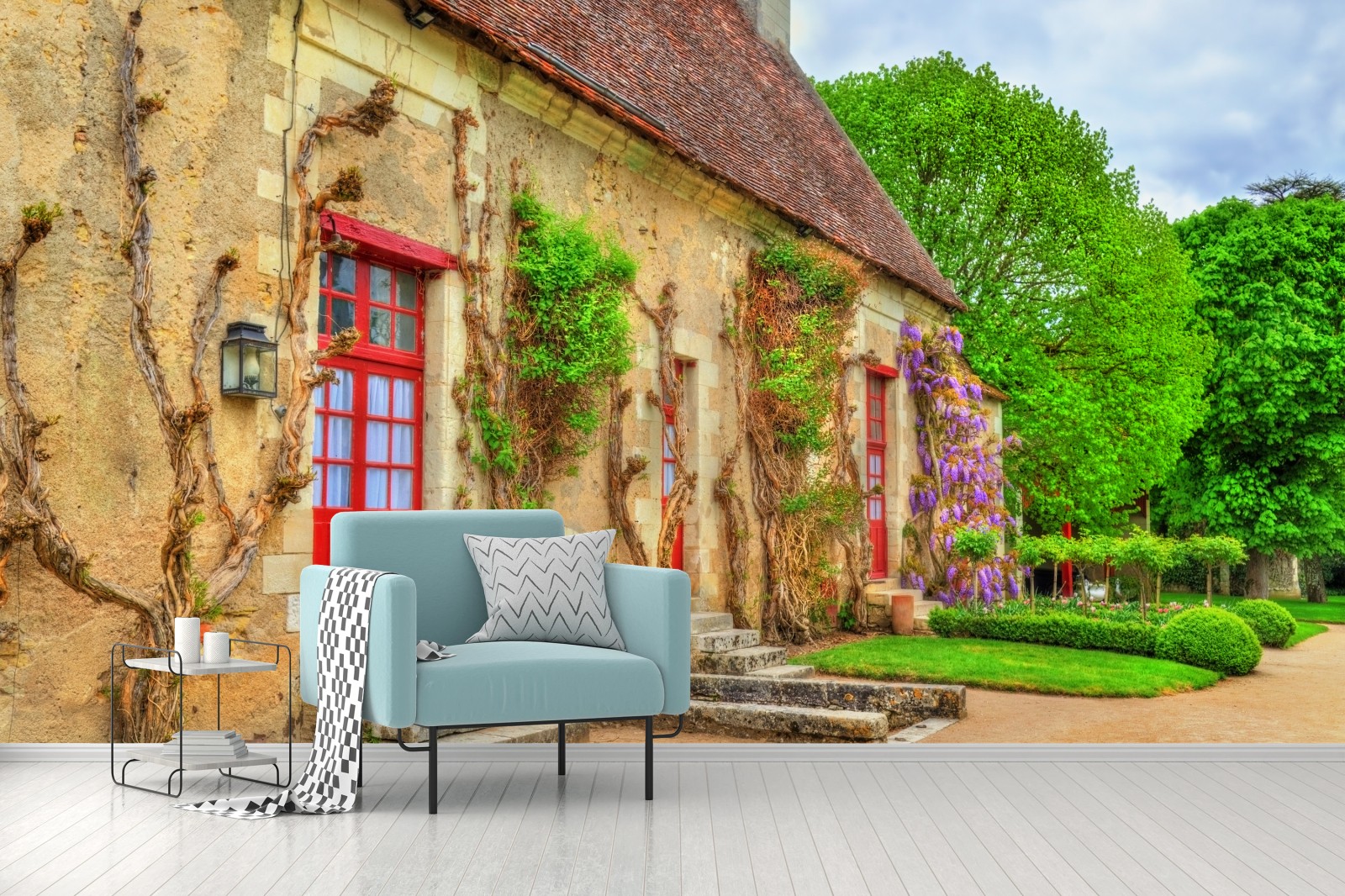 Fototapeta Uroczy domek z kwitnącą glicynią