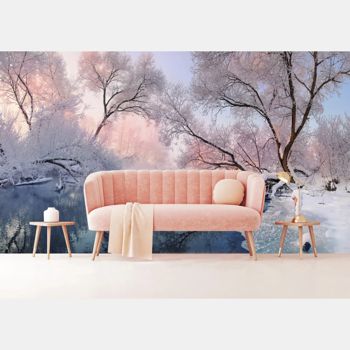 Fototapeta Spokojny zimowy krajobraz nad rzeką