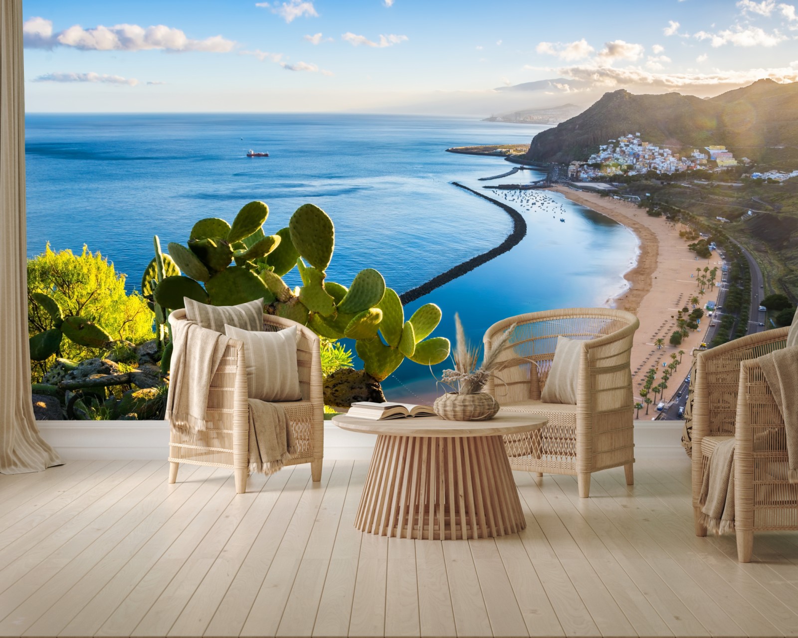 Wprowadź spokojną atmosferę plaży Las Teresitas do wnętrza dzięki tej barwnej panoramie wybrzeża, idealnej jako kojący akcent w każdym pomieszczeniu.