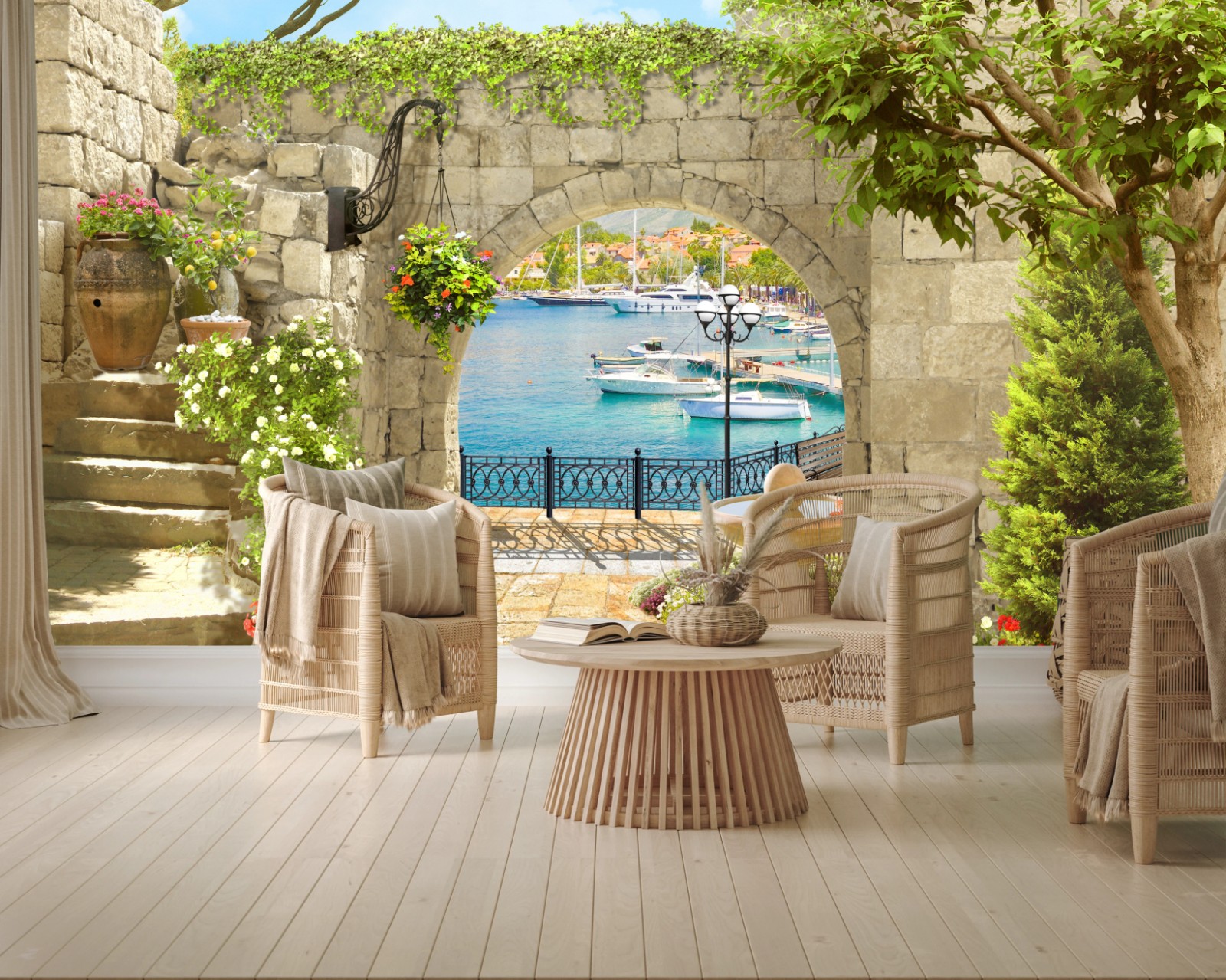 Fototapeta Śródziemnomorski widok przez arkadę