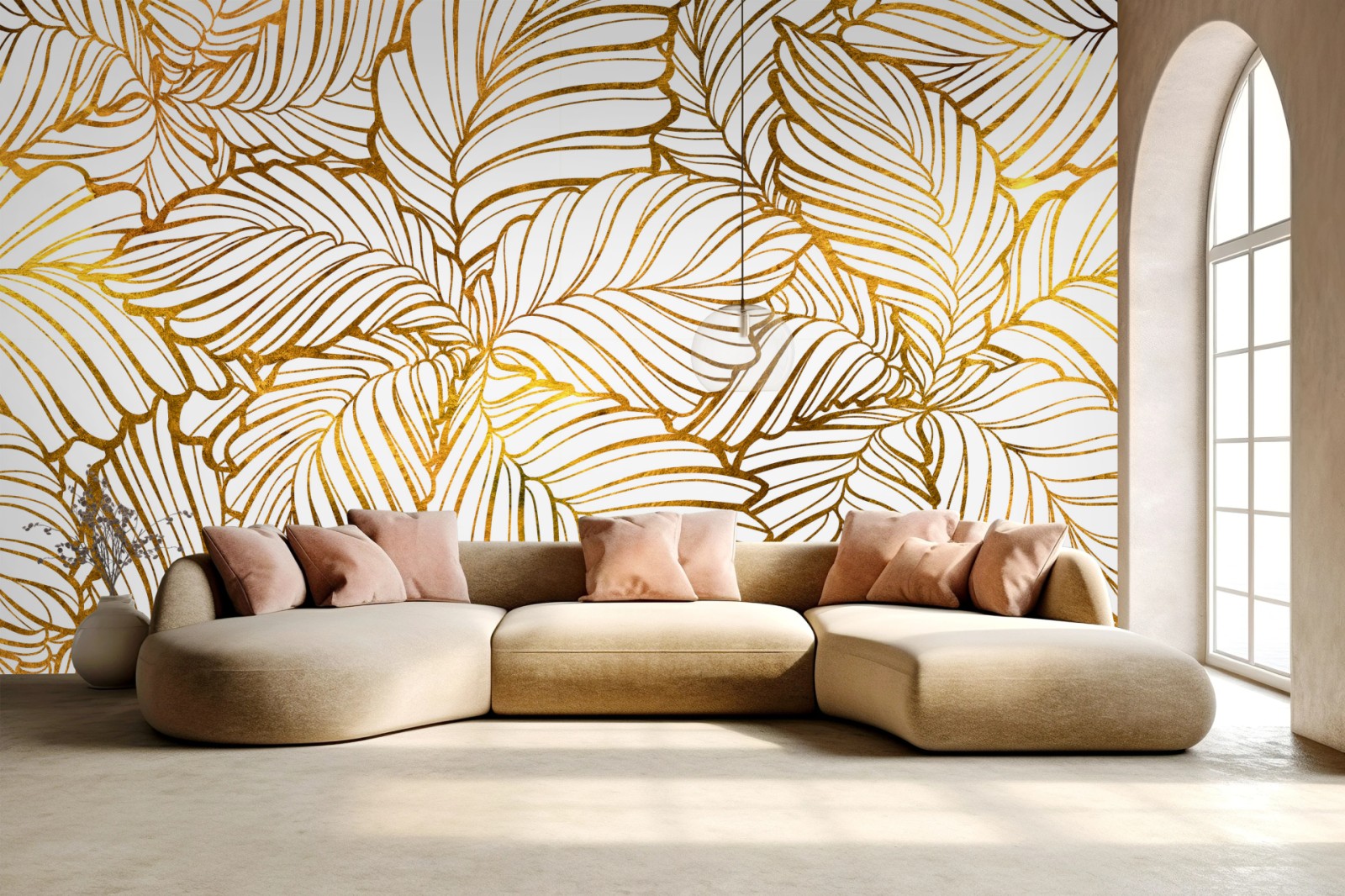 Fototapeta Złote liście w stylu line art