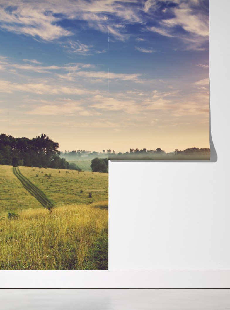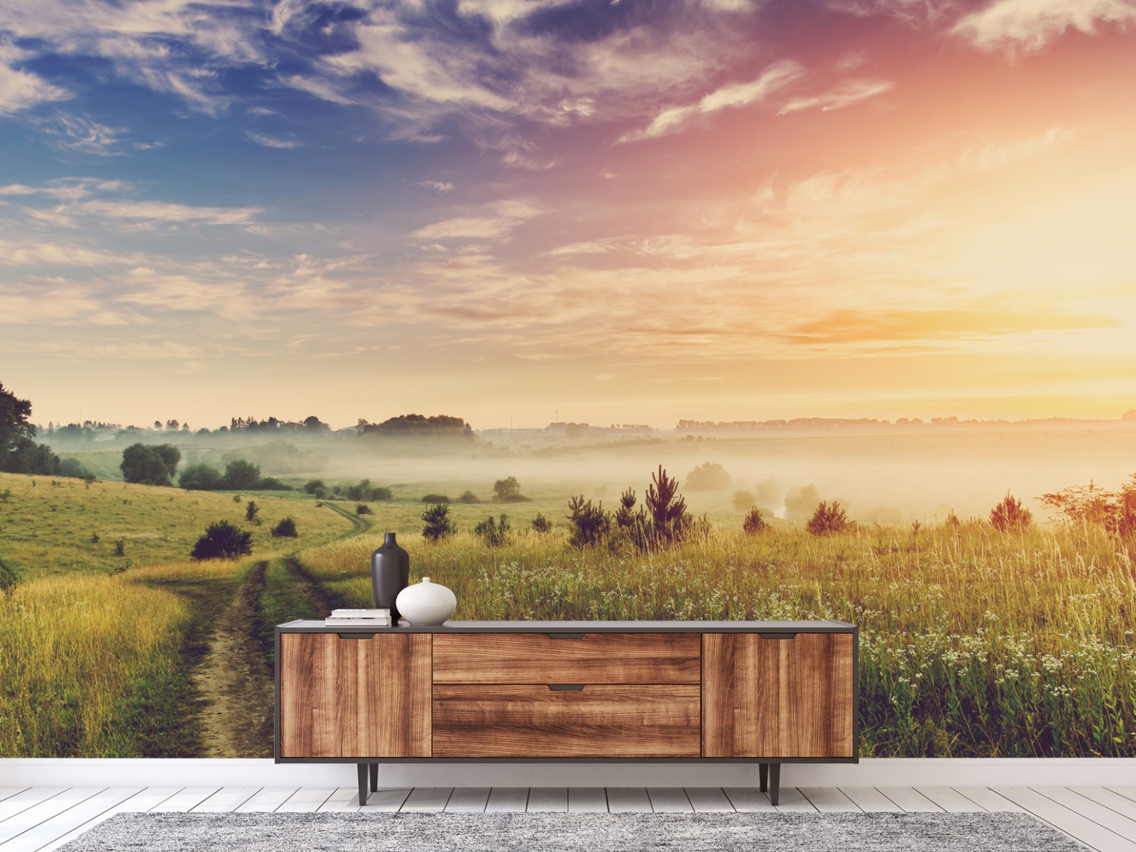 Wprowadź do wnętrza spokój i ciepło dzięki mglistemu wschodowi słońca nad wiejską łąką.