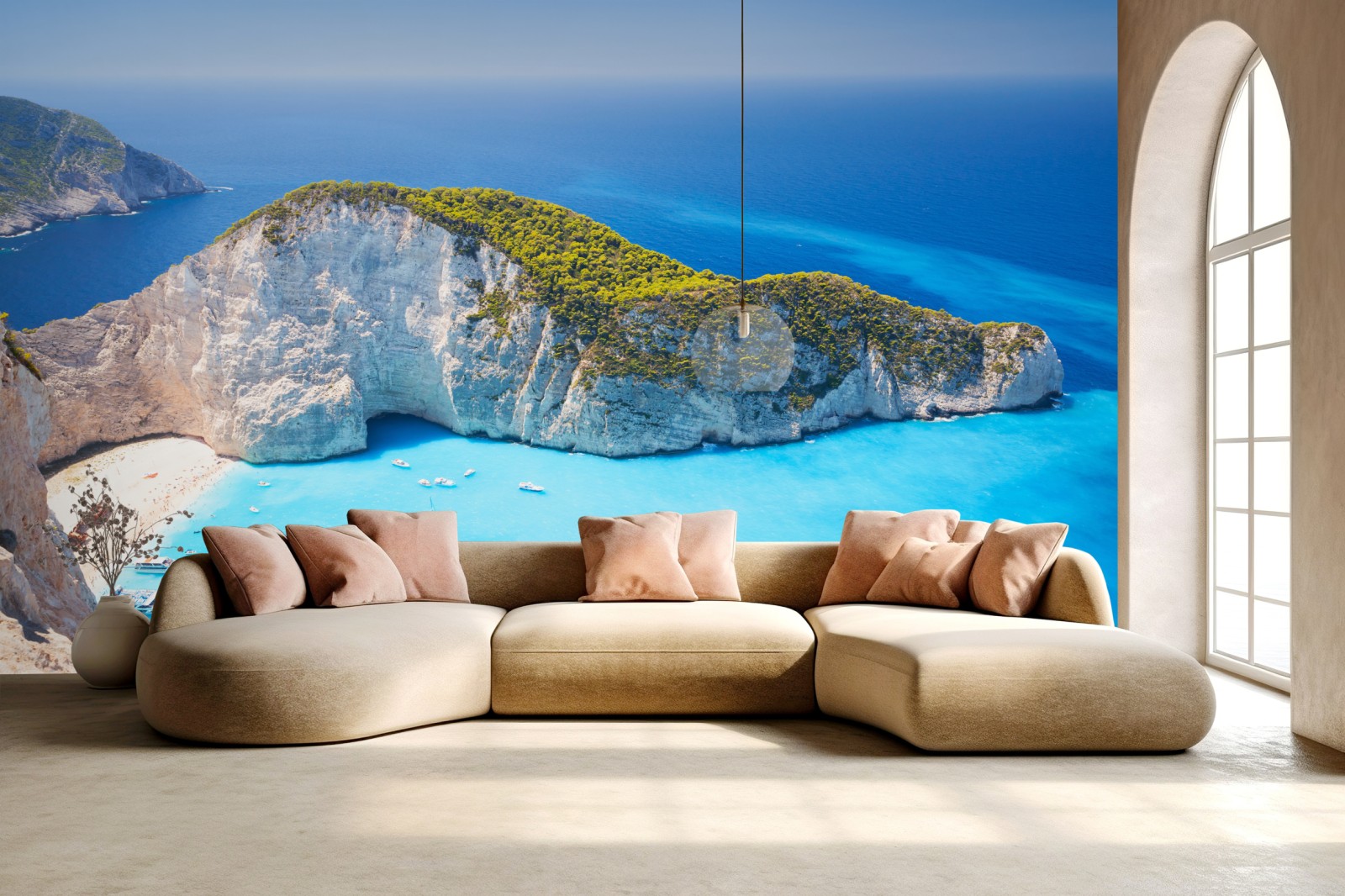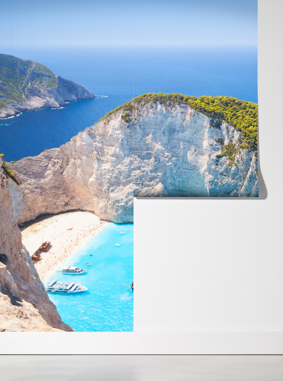 Wprowadź do wnętrza słoneczne klify i turkusowe wody Zatoki Navagio dzięki temu żywemu wydrukowi.