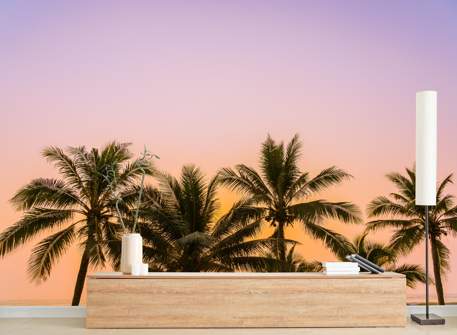 Fototapeta Tropikalny zachód słońca z palmami na plaży