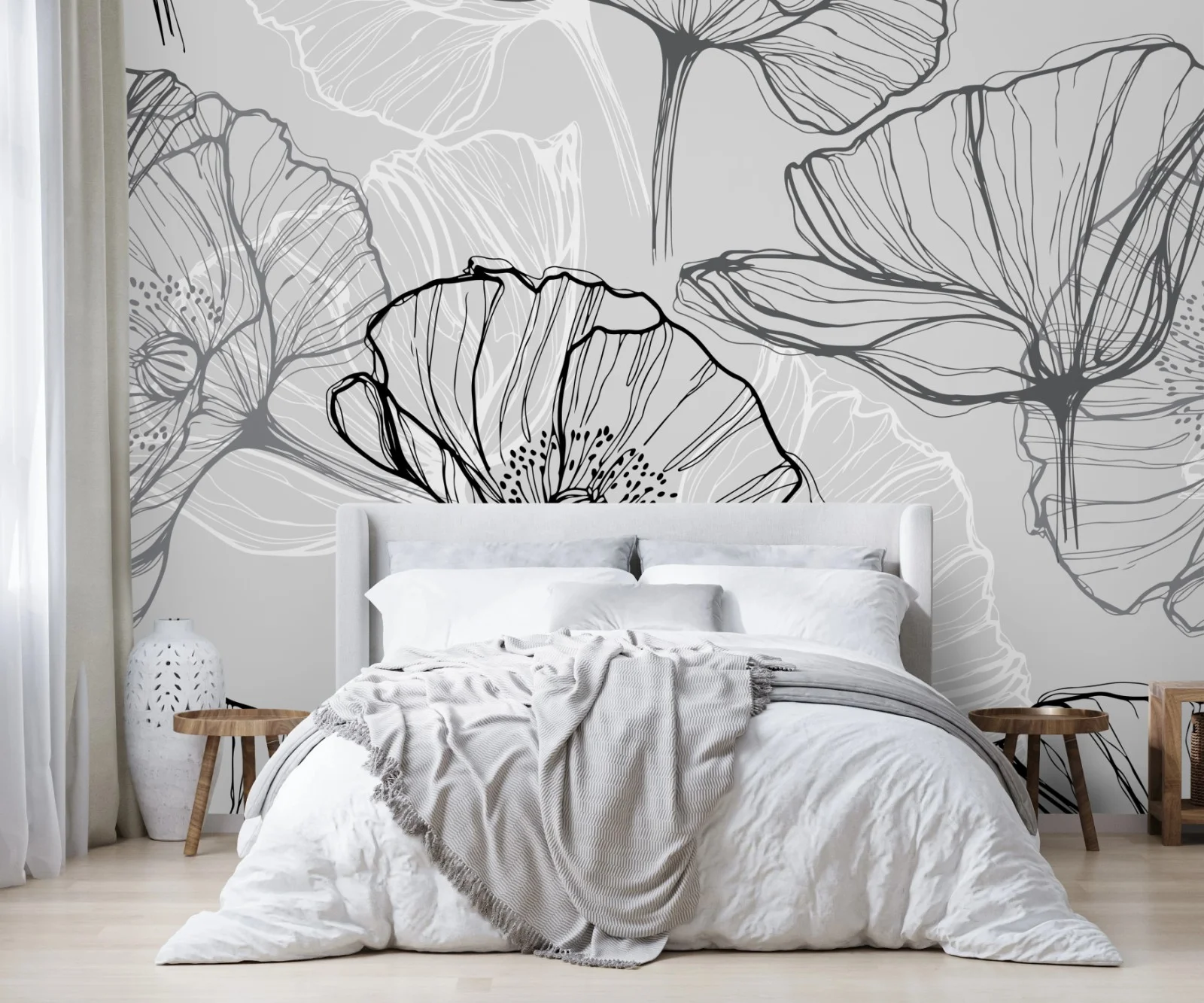 Fototapeta Delikatny szary mak w rysunku liniowym