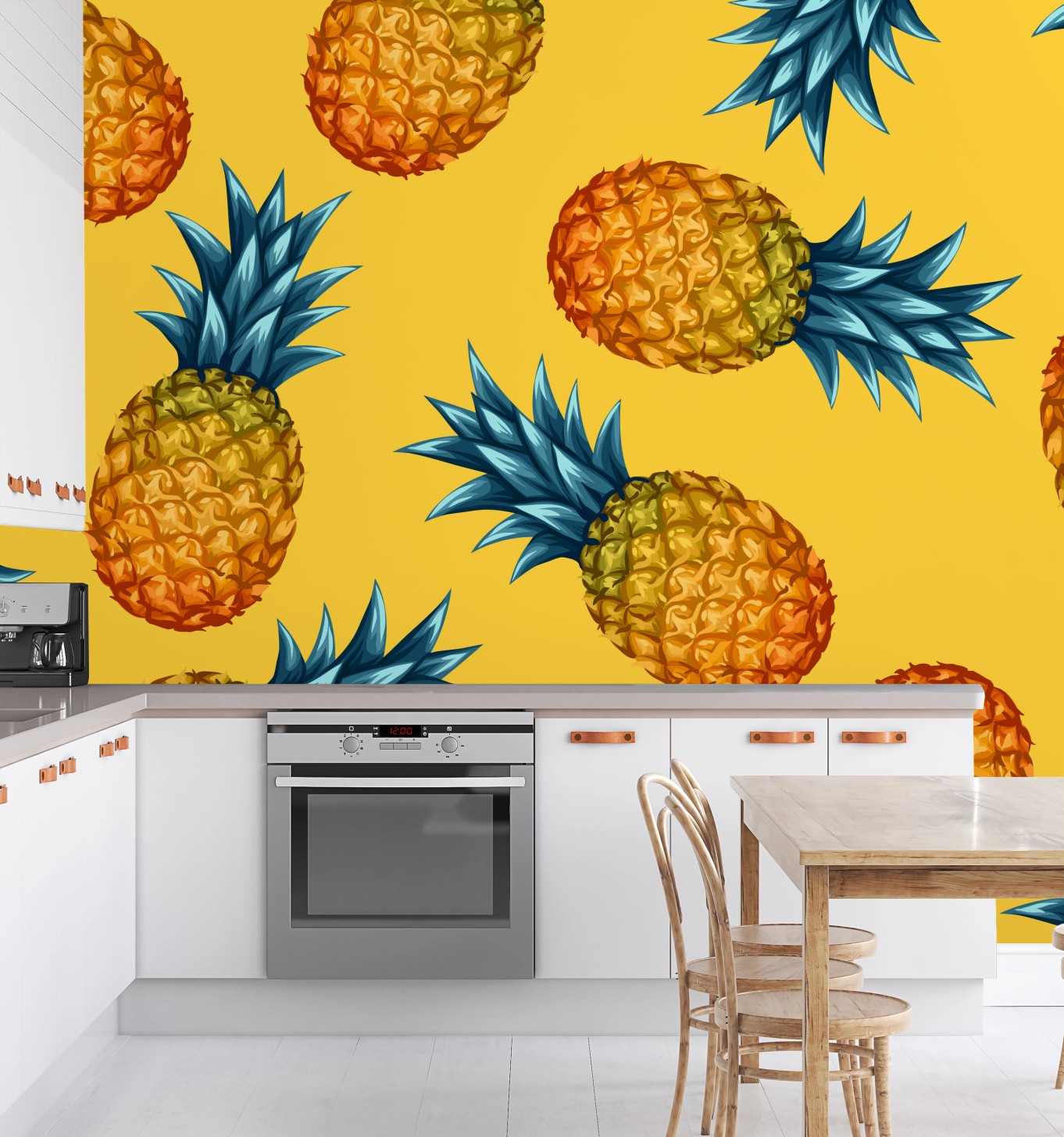 Fototapeta Tropikalny wzór z ananasami na żółtym tle