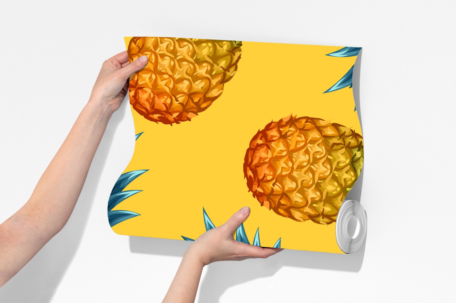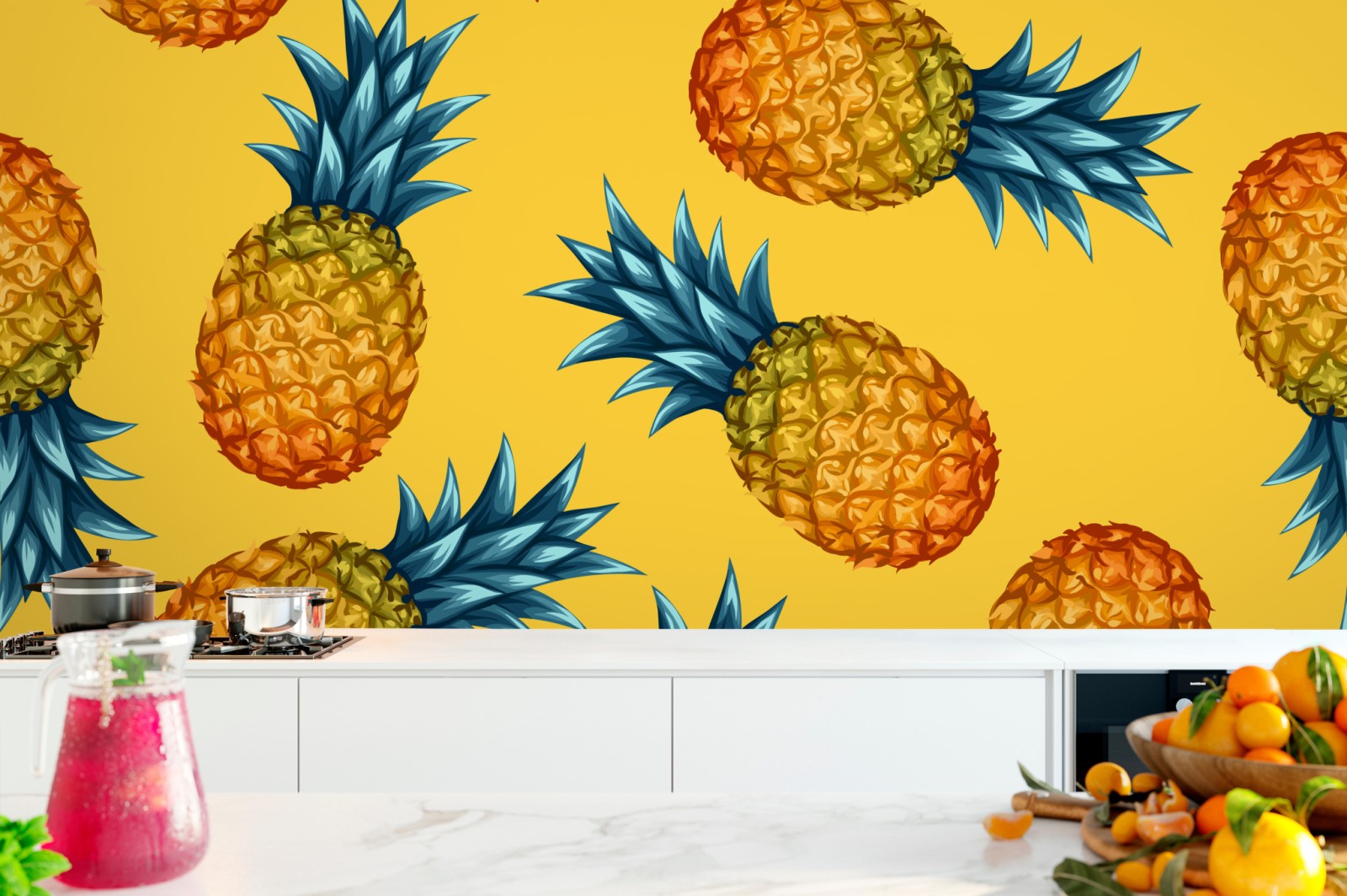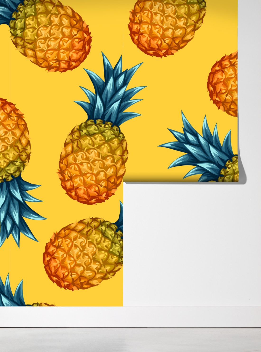 Żywy tropikalny wzór z ananasami dodaje letniej energii każdemu wnętrzu i wprowadza radosny akcent kolorystyczny.
