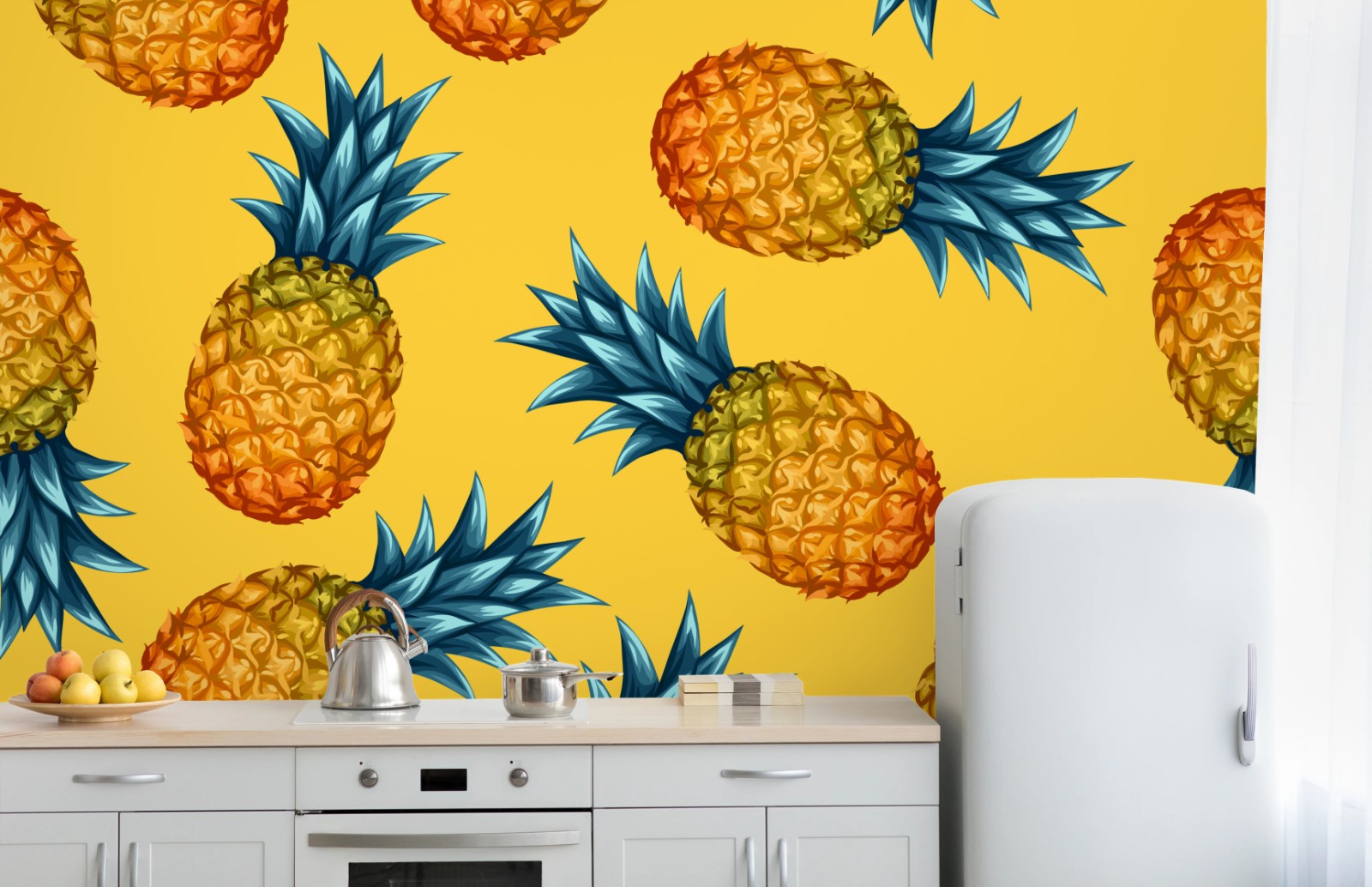 Fototapeta Tropikalny wzór z ananasami na żółtym tle