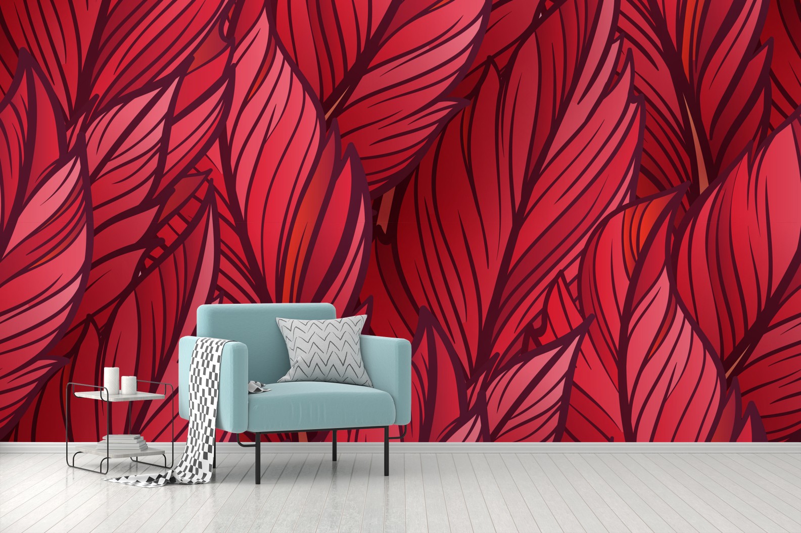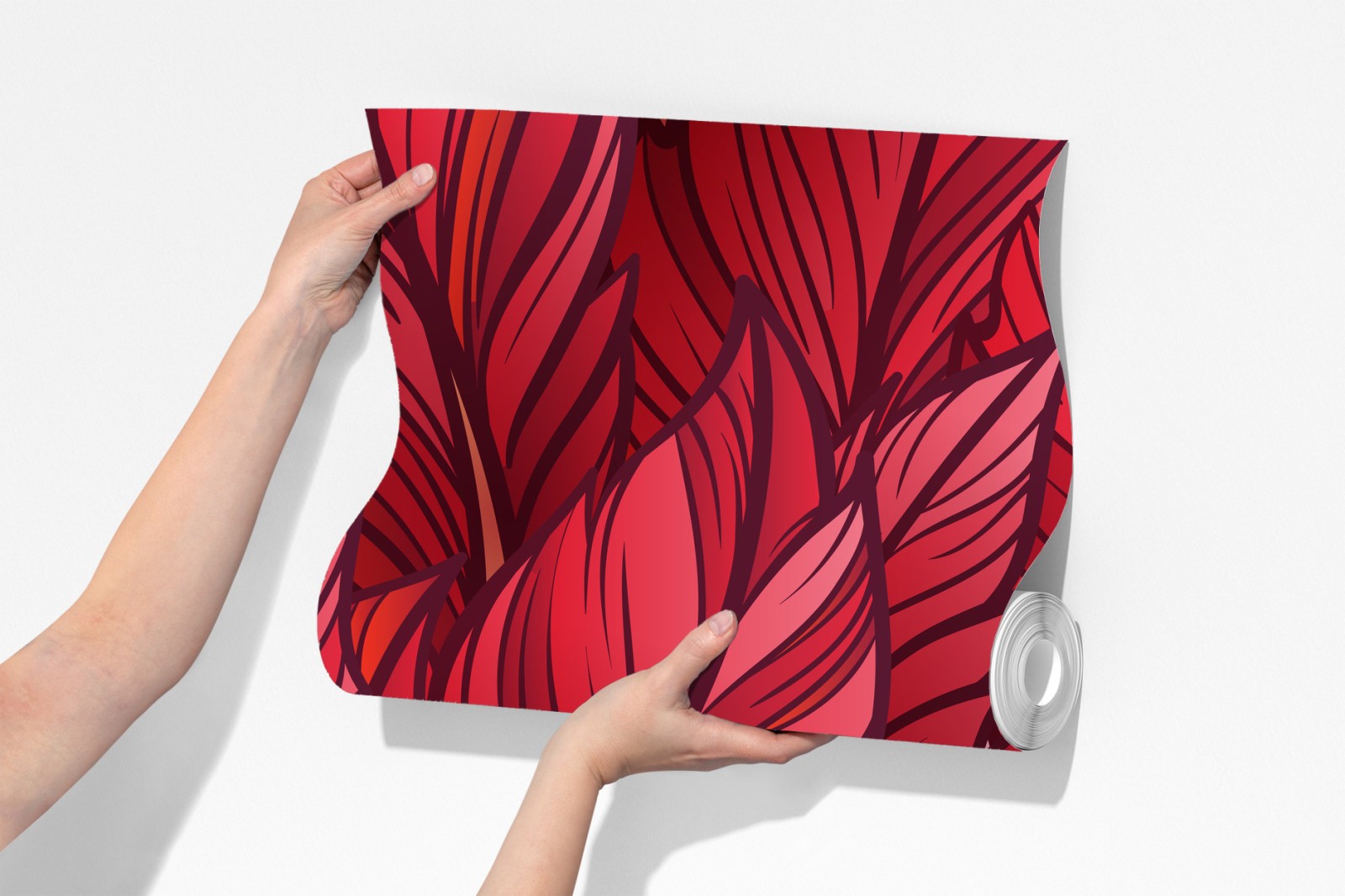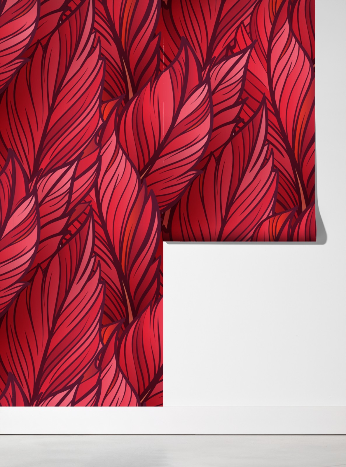 Dodaj odważny botaniczny akcent do wnętrza dzięki temu żywemu czerwonymu wzorowi liści, idealnemu jako wyrazisty punkt centralny.