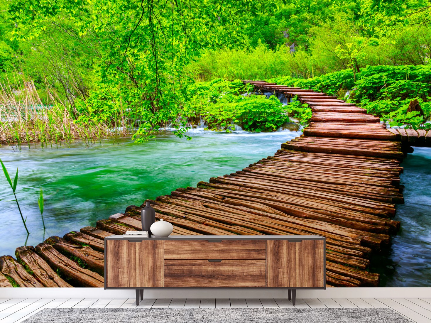 Fototapeta Spokojna zielona kładka nad rzeką