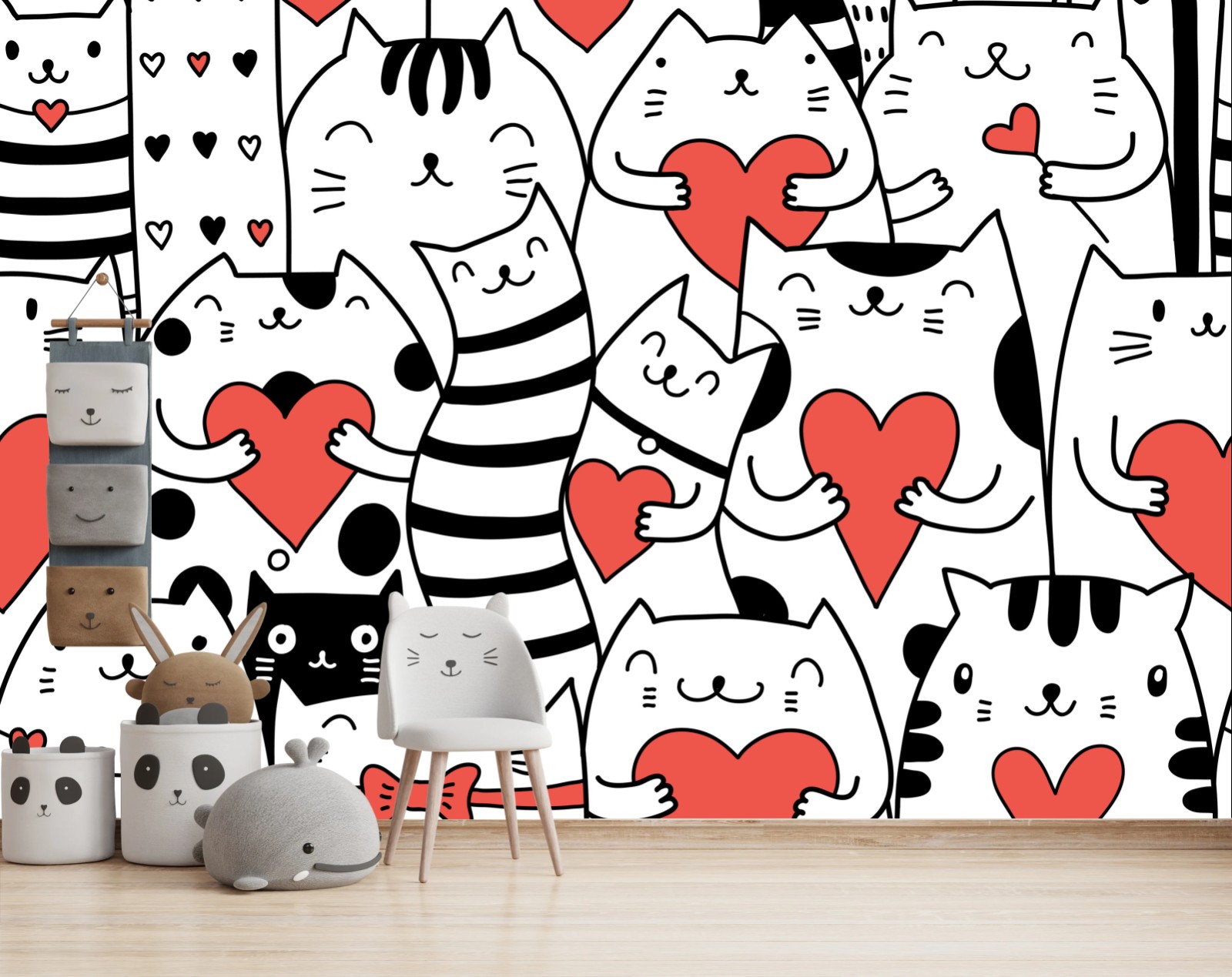 Fototapeta Urocze koty z sercami wzór