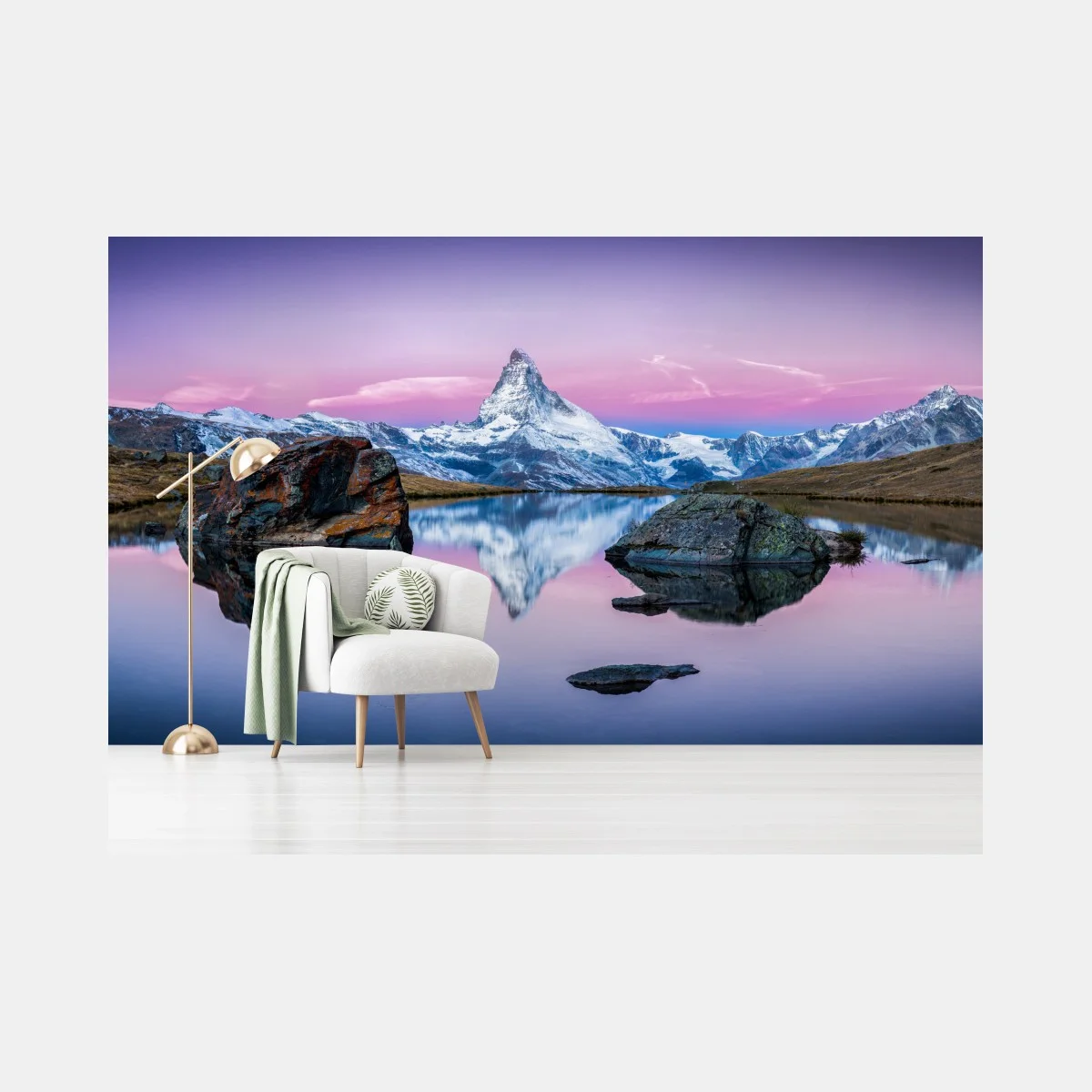 Fototapeta Spokojne alpejskie odbicie o zachodzie
