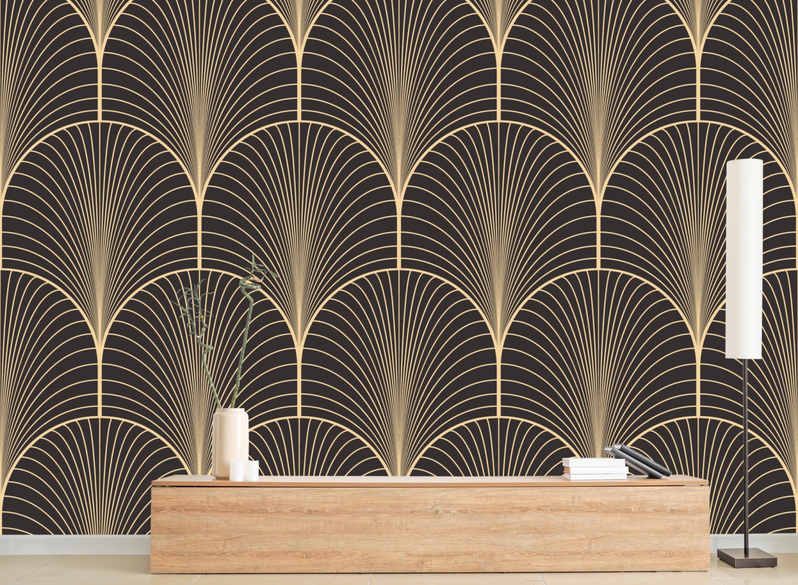 Dodaj wnętrzu elegancji dzięki złotemu geometrycznemu wzorowi art deco o ponadczasowym charakterze.
