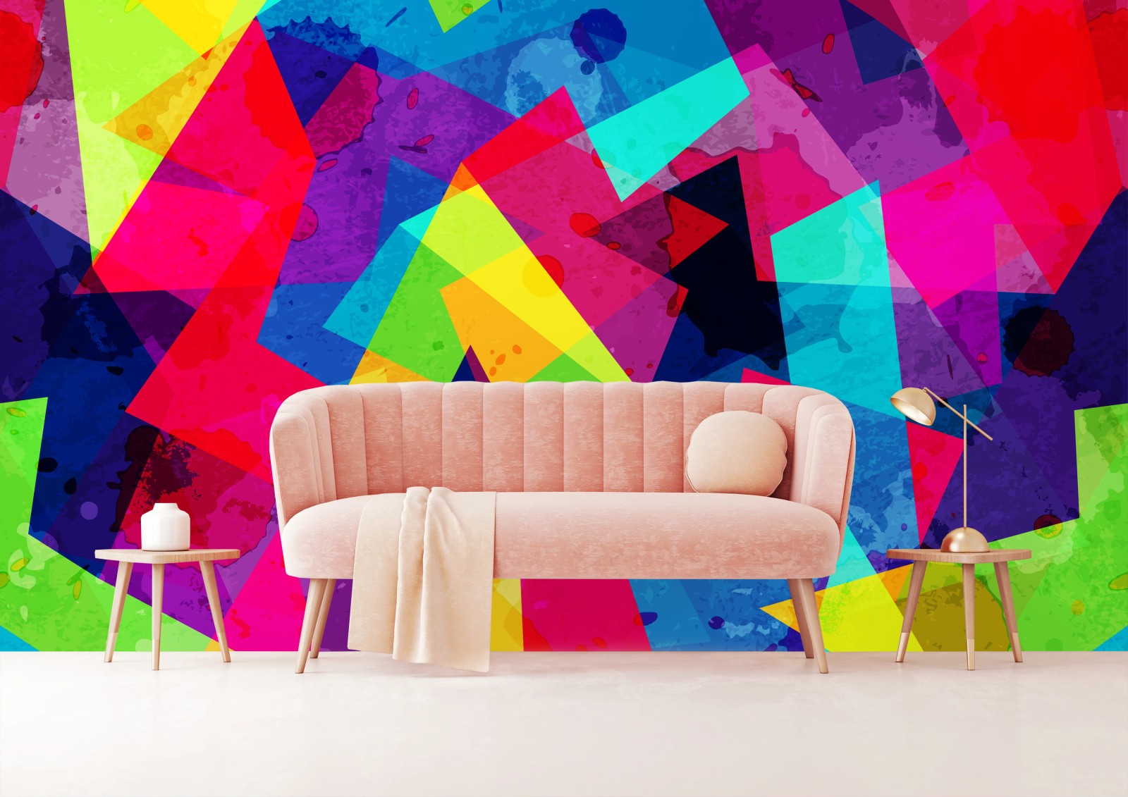- kolorowy, abstrakcja, geometryczny, wzór, akwarela, żywy, nowoczesny, kształty, współczesny, neonowy