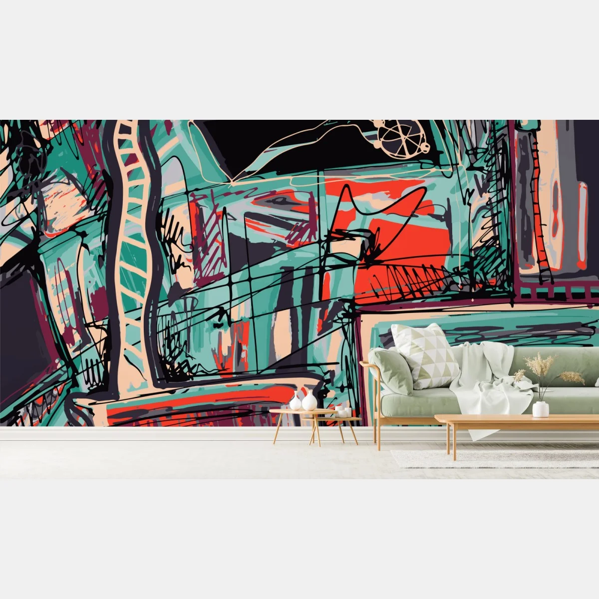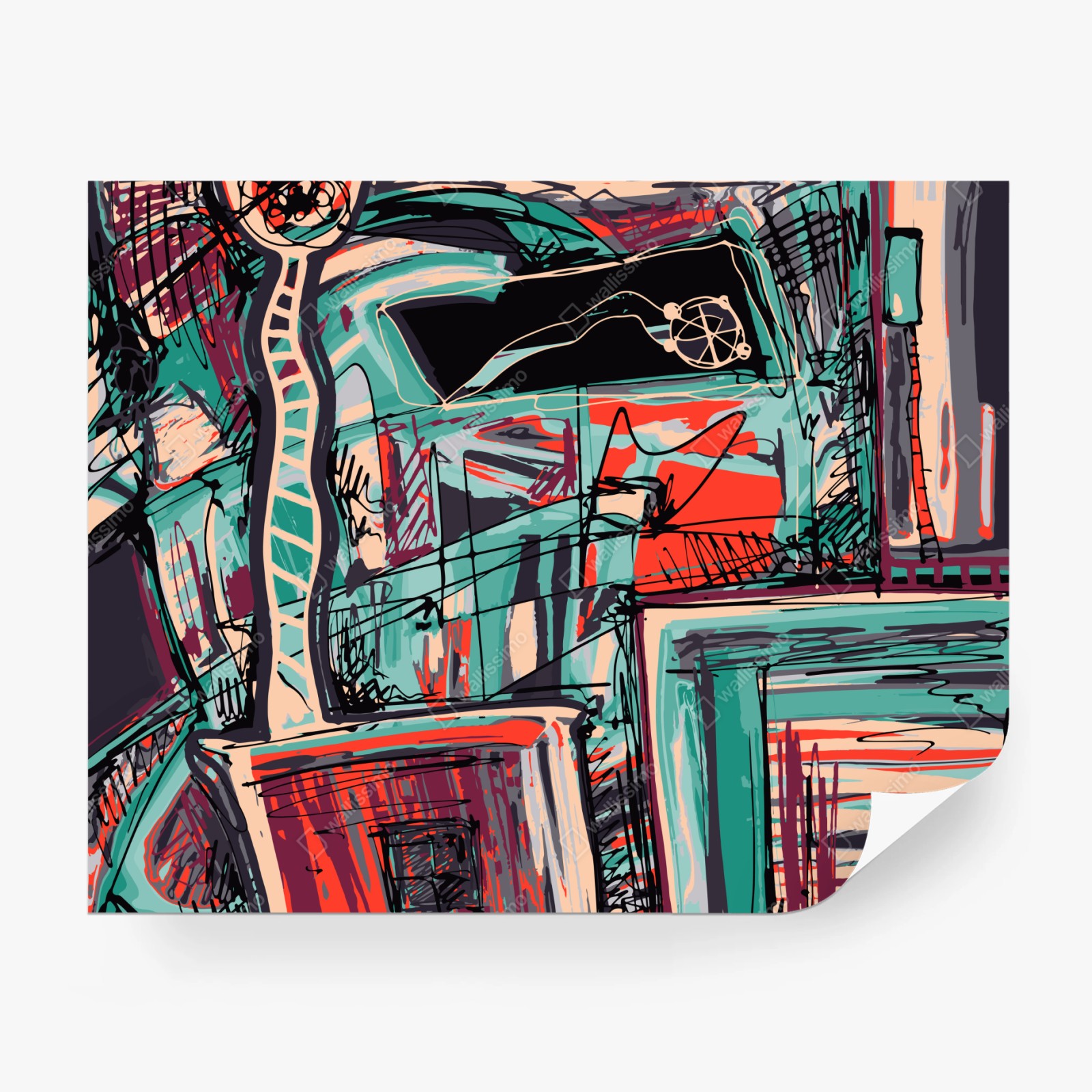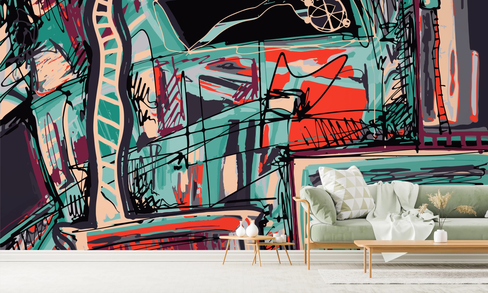 - kolorowa, abstrakcja, dekoracja ścienna, wzór, żywe kolory, nowoczesna sztuka, ilustracja cyfrowa, geometryczna, turkusowa, czerwona