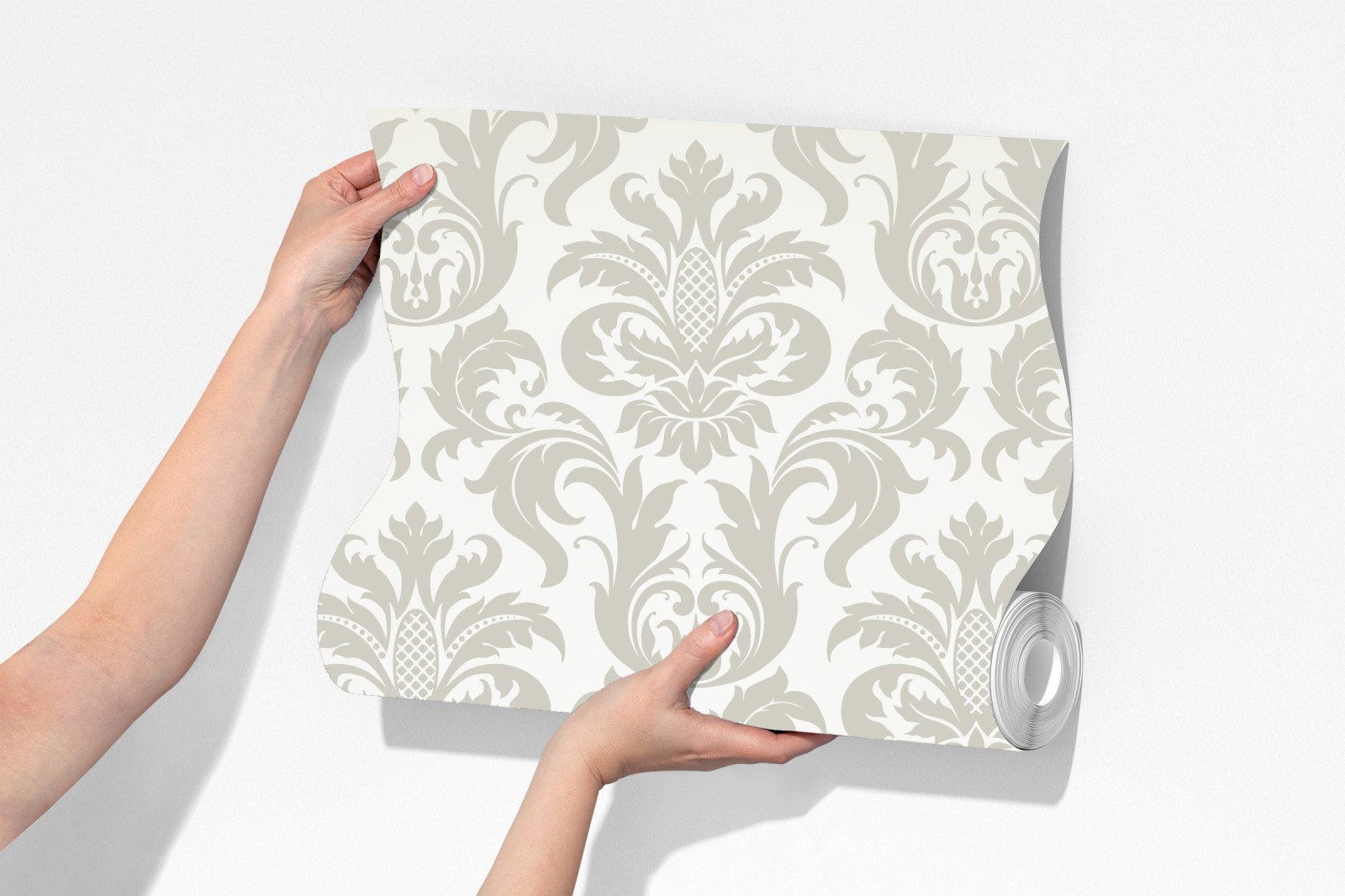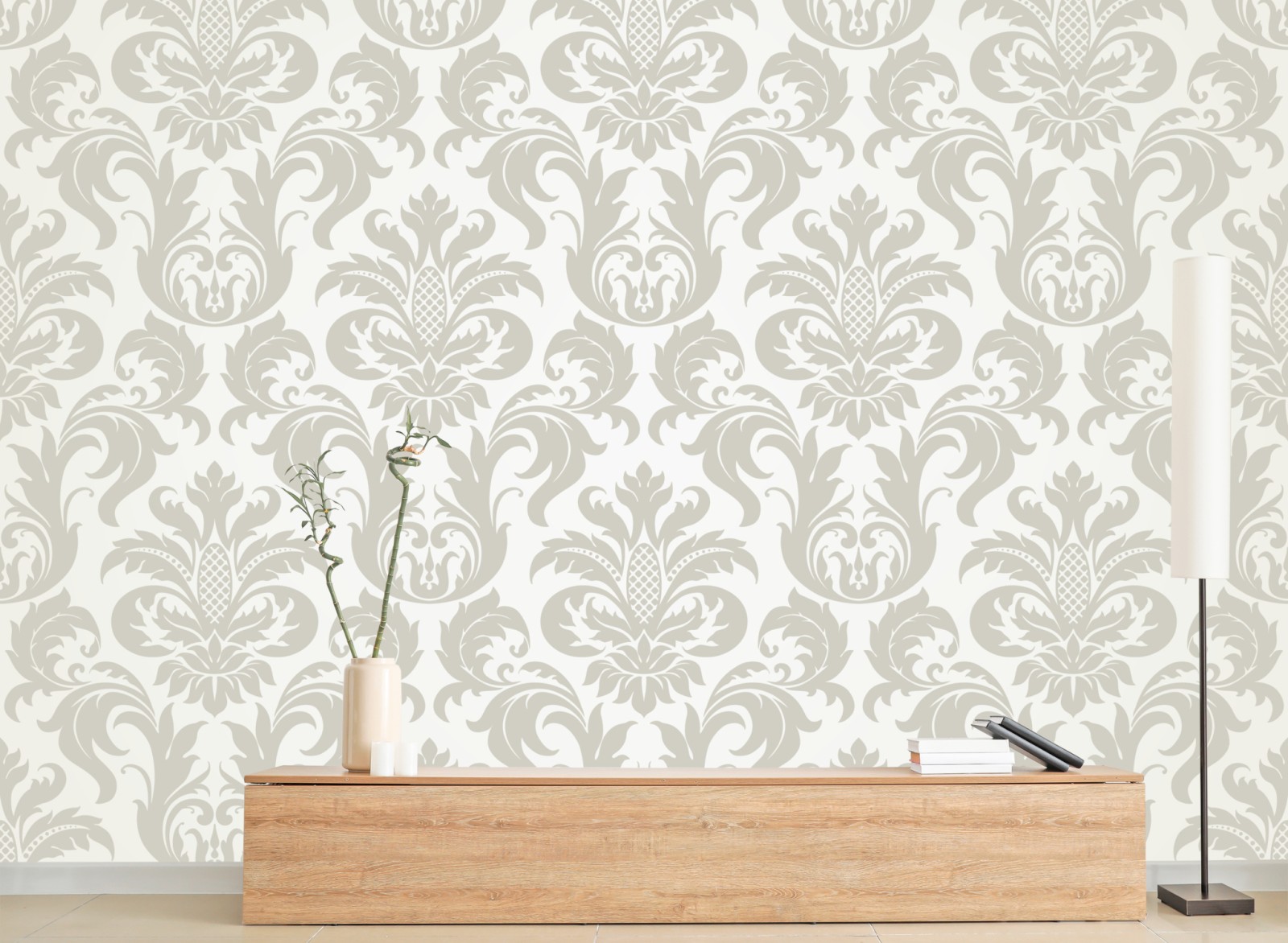 Dodaj wnętrzu elegancji dzięki temu beżowemu wzorowi damask, który wprowadza klasyczny urok i subtelną fakturę.