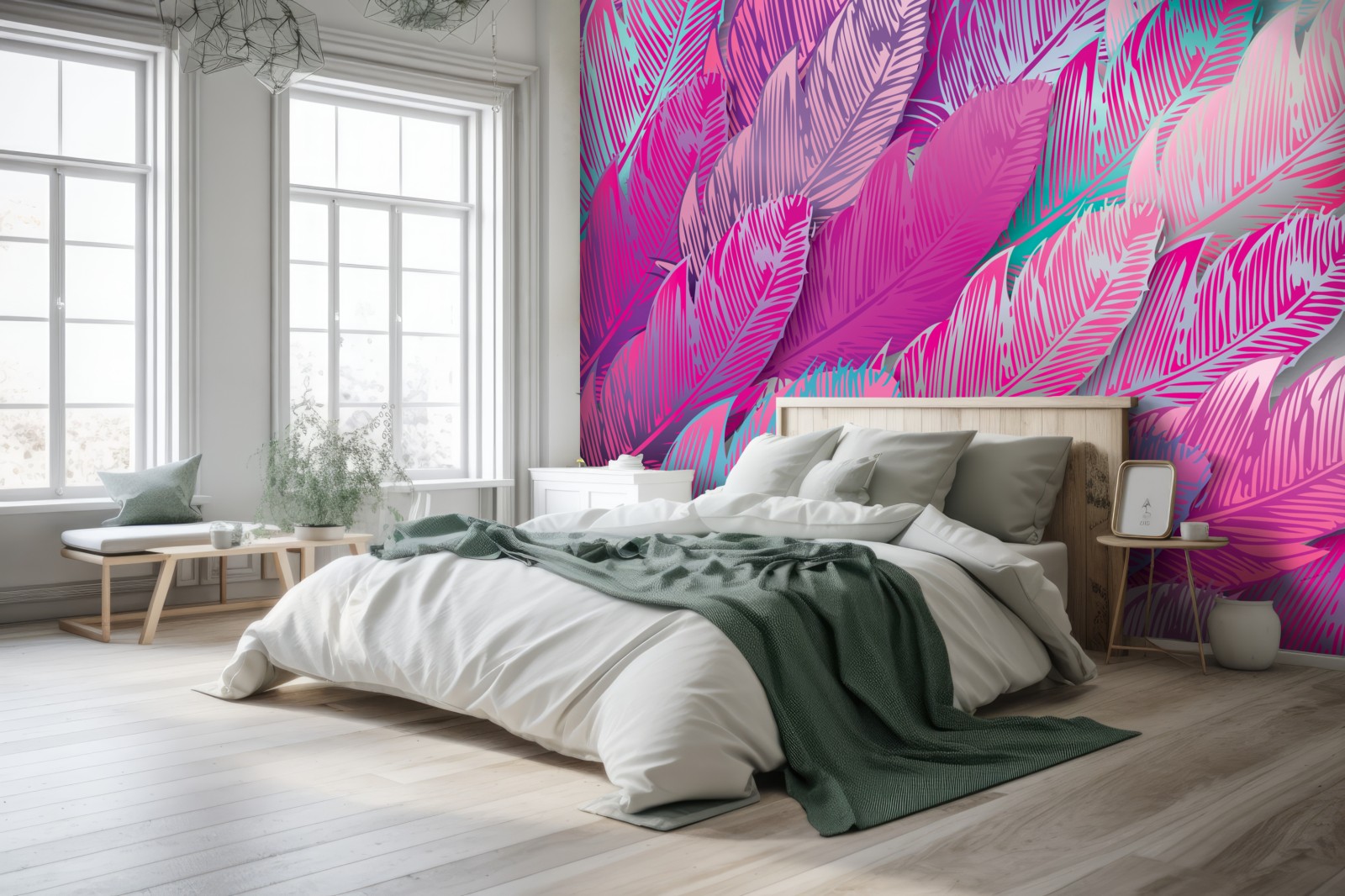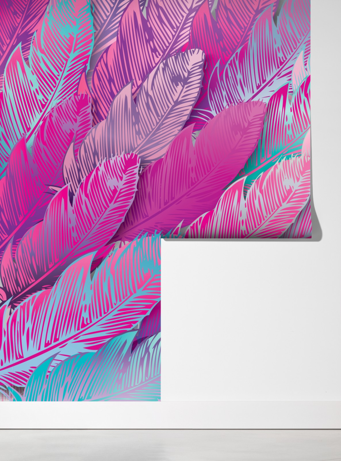 Dodaj żywy akcent do wnętrza dzięki iryzującemu różowemu wzorowi piór, idealnemu do nadania koloru i faktury każdemu pomieszczeniu.