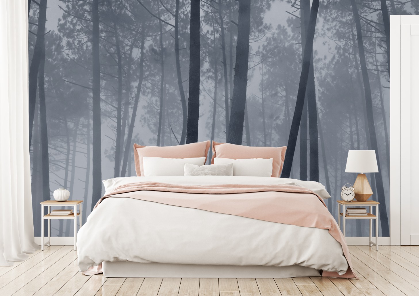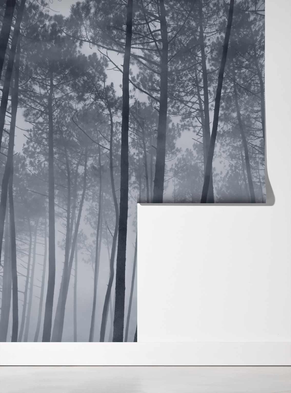 Wprowadź do wnętrza mroczną i nastrojową atmosferę mglistego sosnowego lasu.
