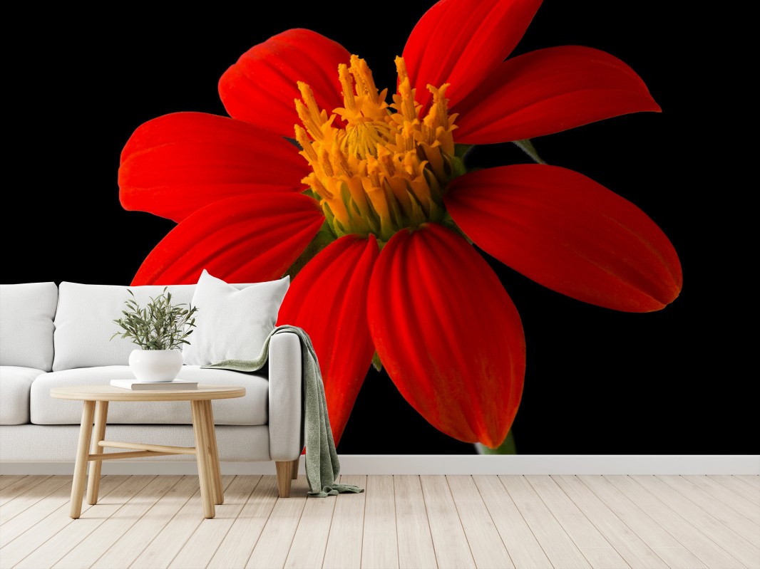 Fototapeta Żywy słonecznik meksykański na czarnym tle