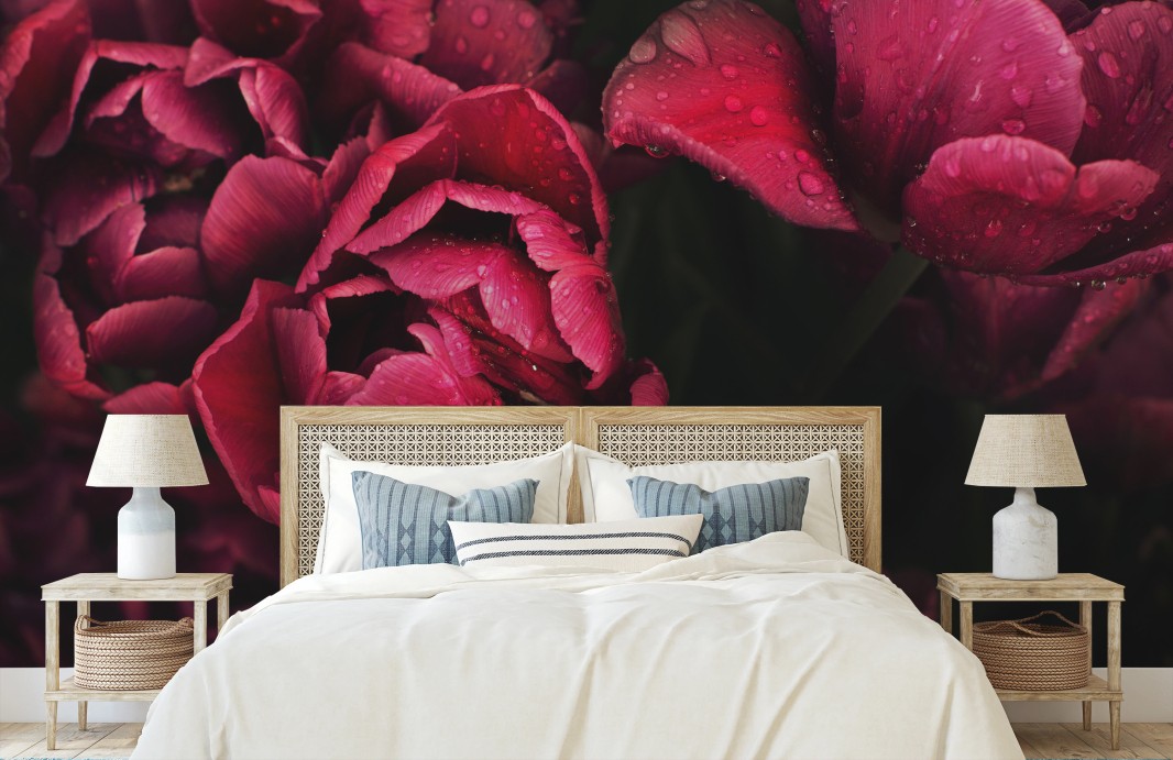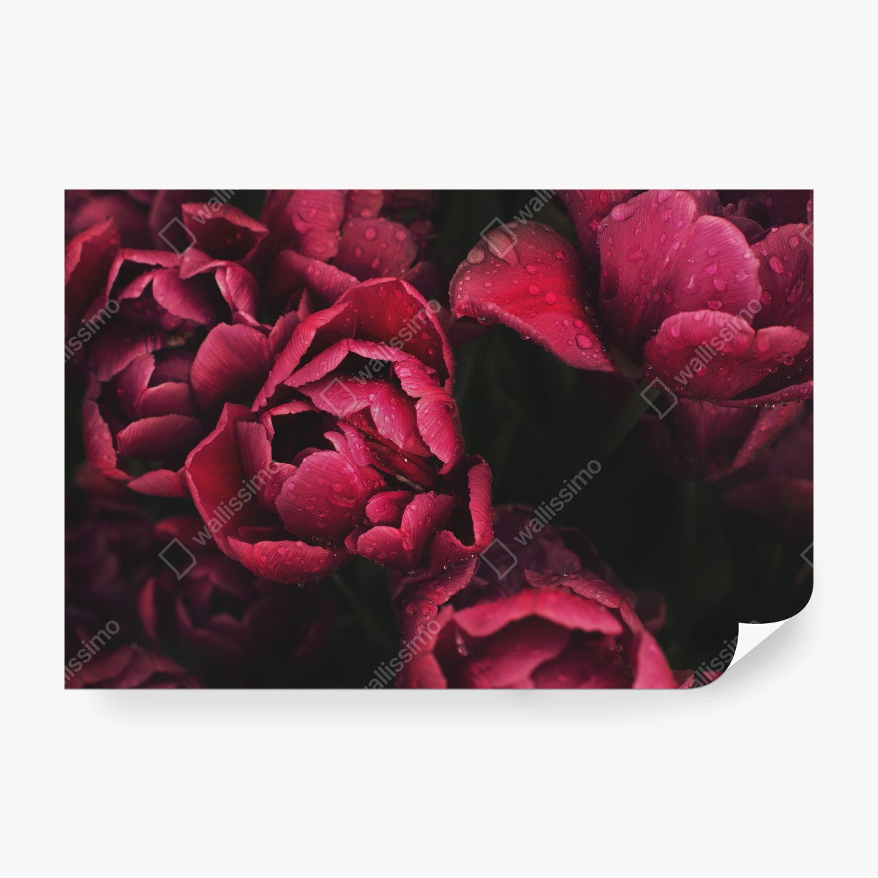 Fototapeta Głębokie bordowe kwiaty z kroplami wody