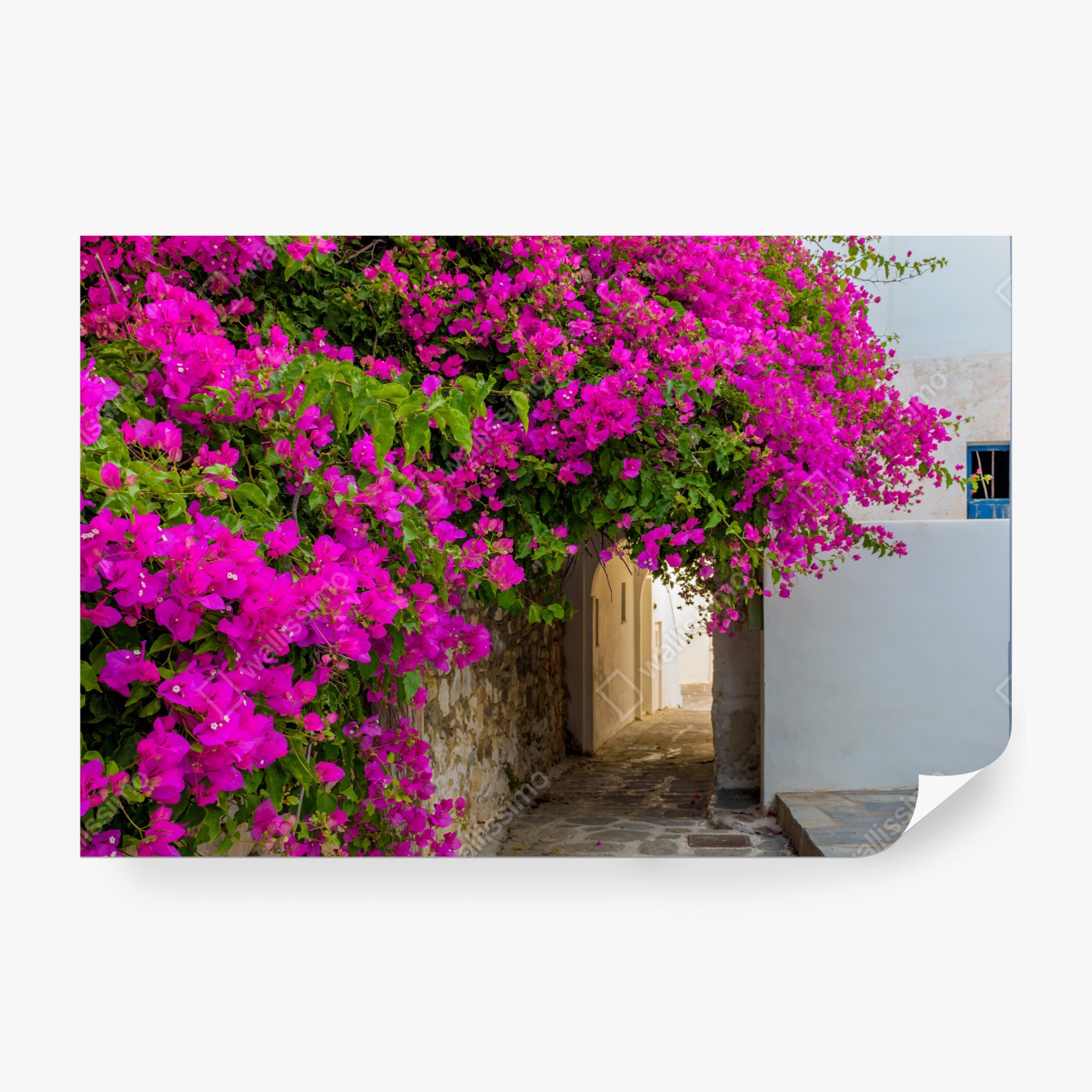 Fototapeta Kwitnąca bugenwilla w uliczce Naousa