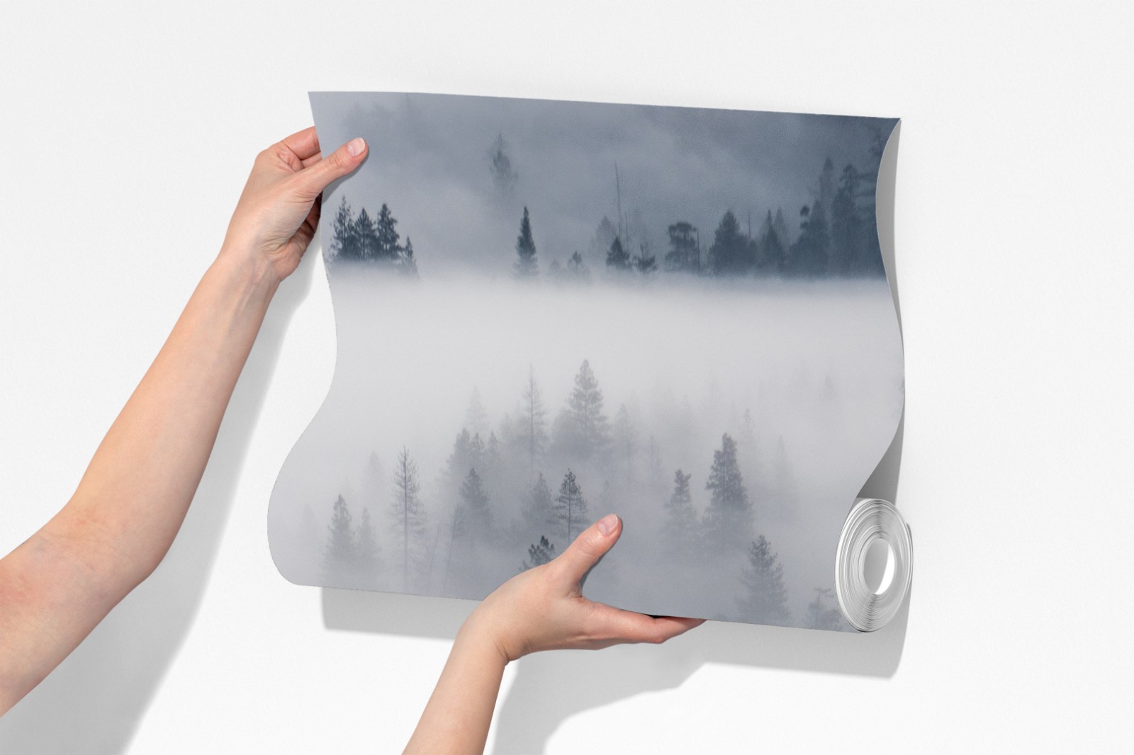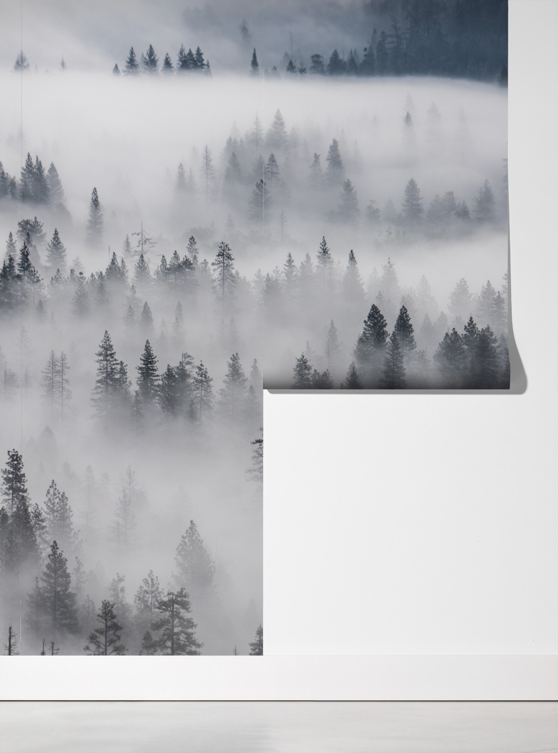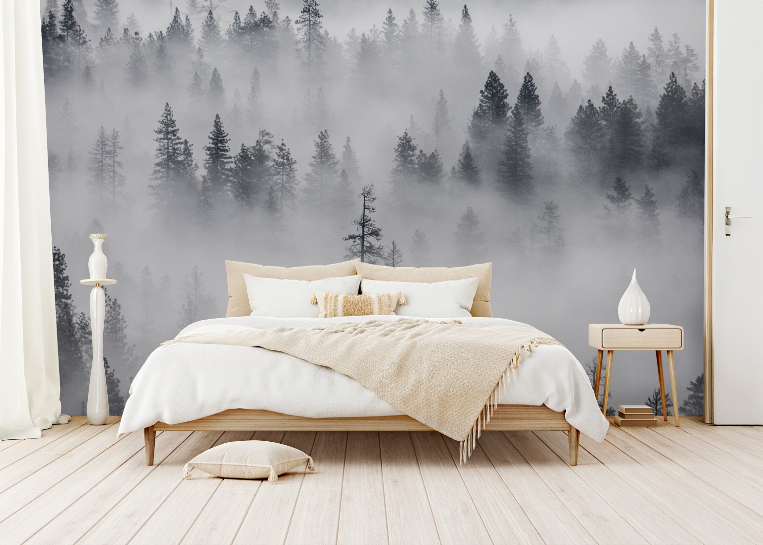 Wprowadź do wnętrza spokój i naturalne piękno dzięki temu obrazowi mglistego lasu.