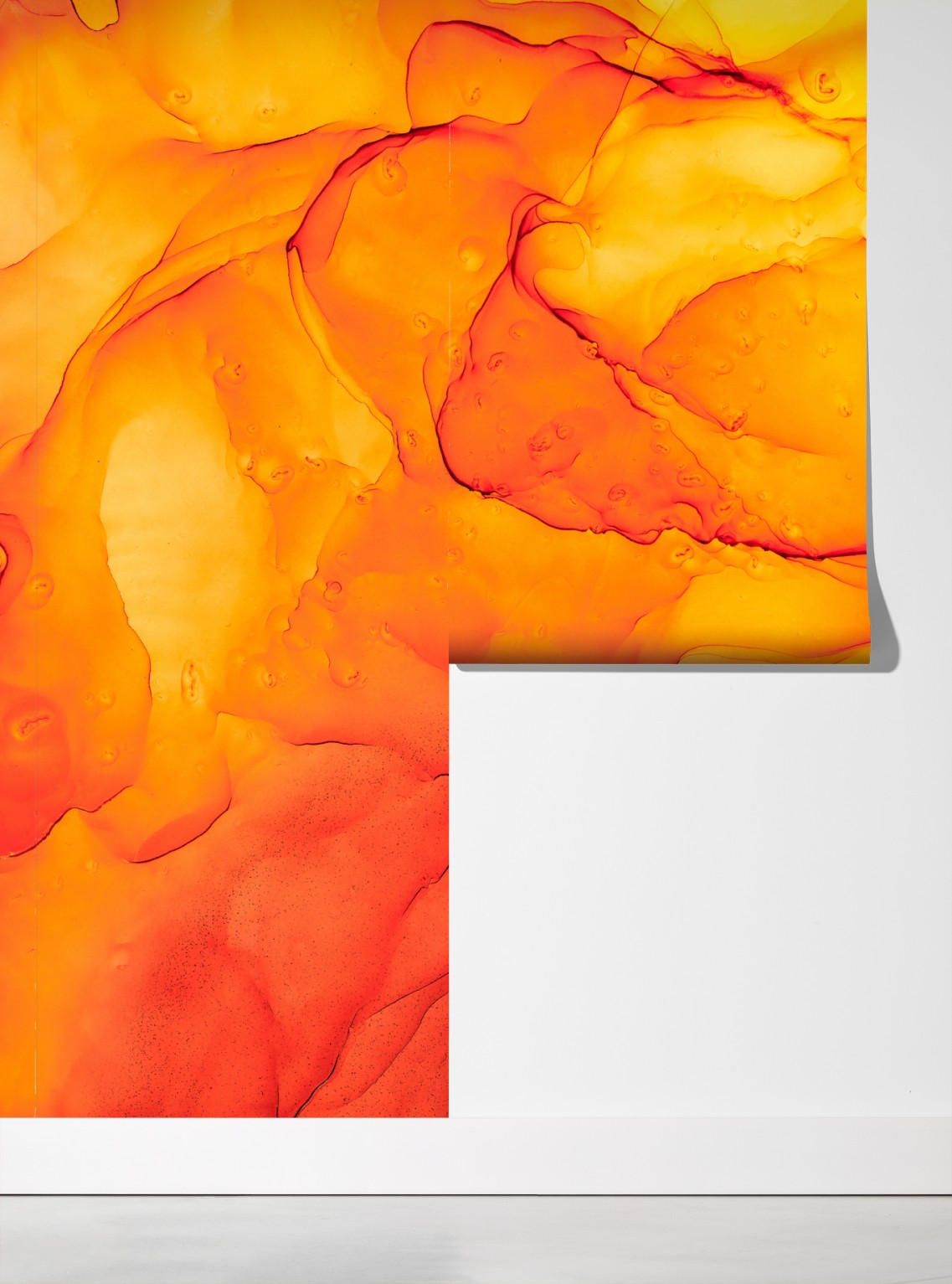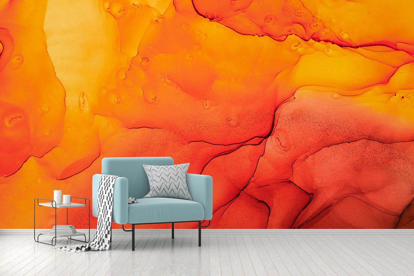 Ożyw swoje wnętrze dzięki intensywnej abstrakcji w odcieniach pomarańczy i żółci, idealnej do nowoczesnych aranżacji.