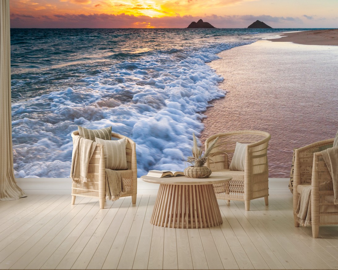 Fototapeta Spokojny wschód słońca nad brzegiem oceanu