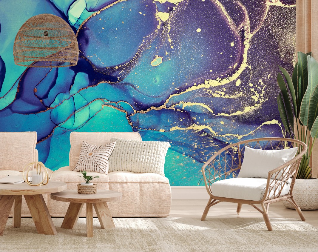 Fototapeta Turkusowo-złota płynna marmurkowa abstrakcja