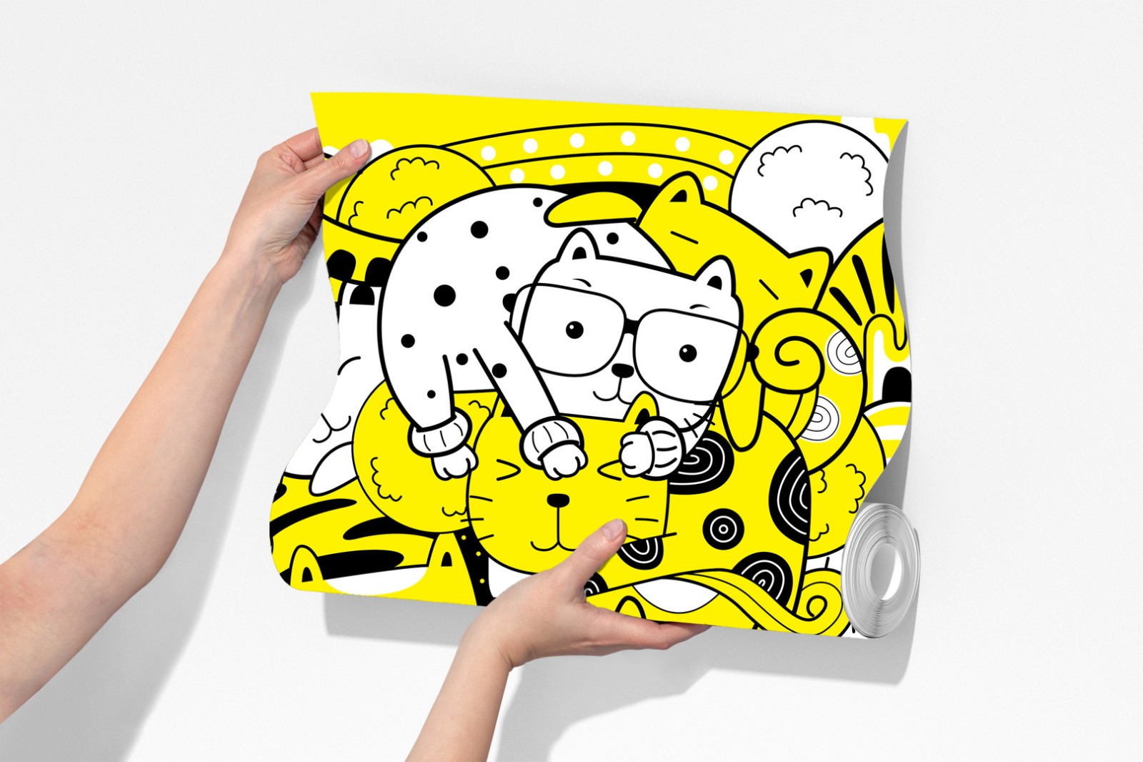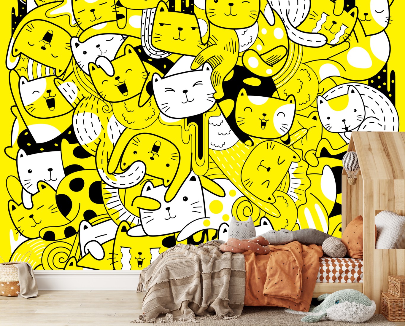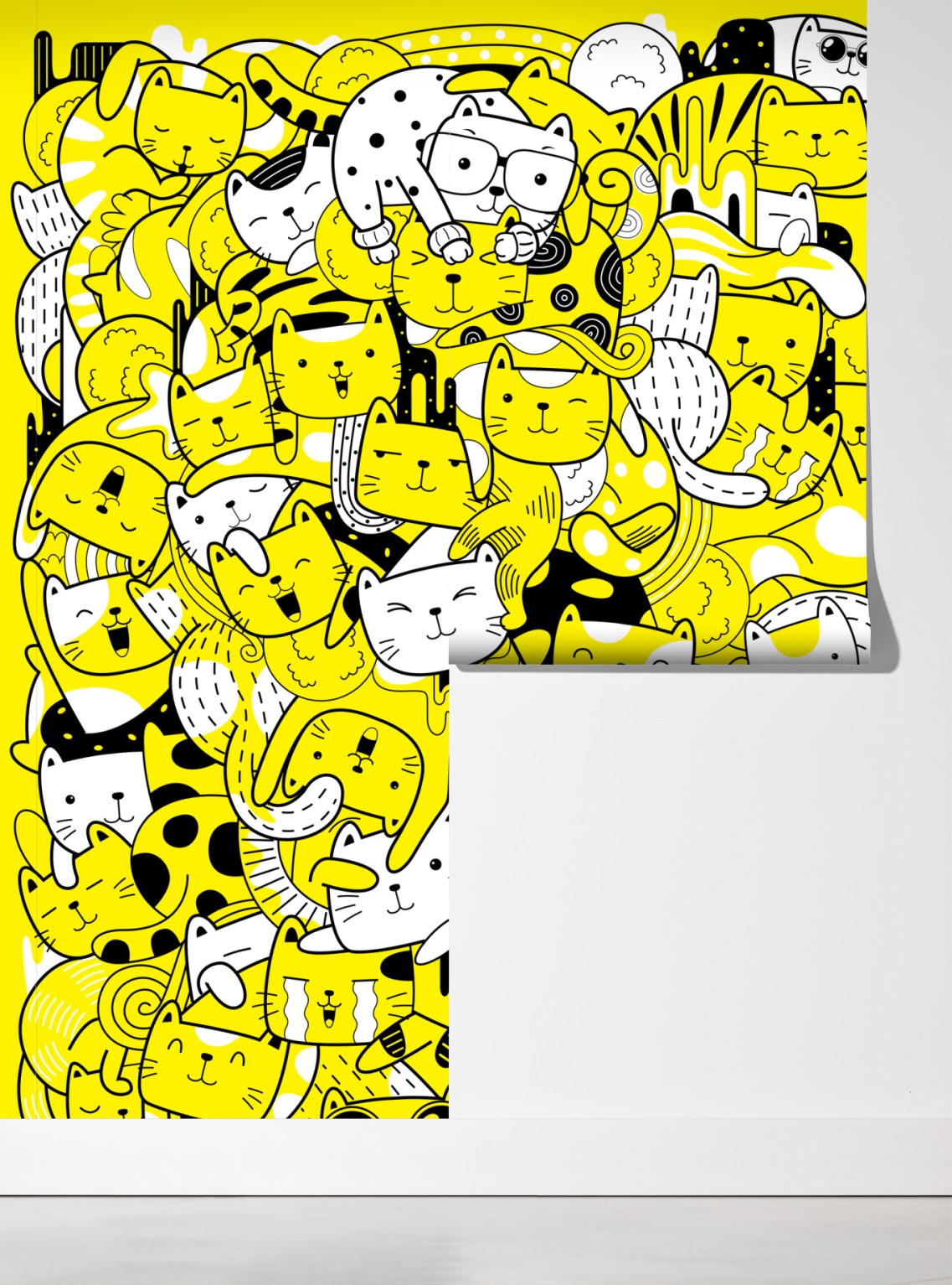 Jasna i radosna mozaika kotów wnosi pogodną energię do każdego pomieszczenia, idealna do pokoju dziecięcego lub nowoczesnego wnętrza.